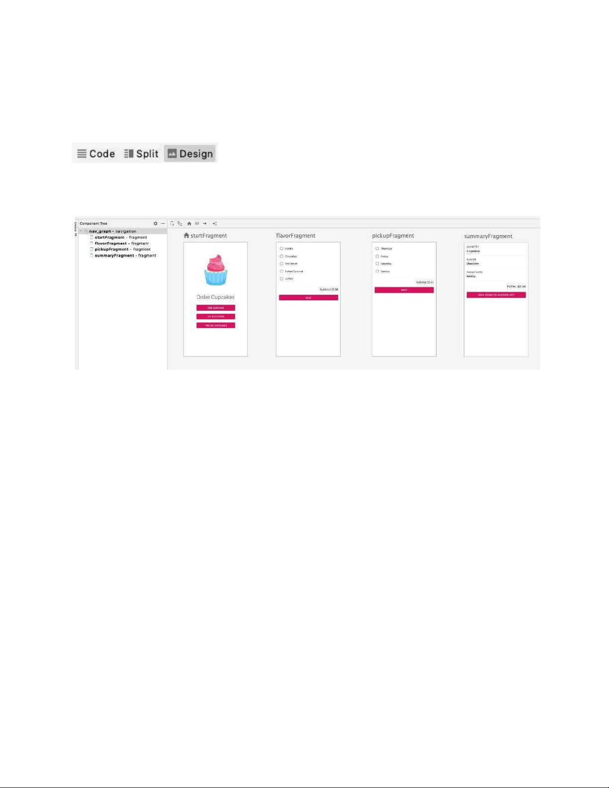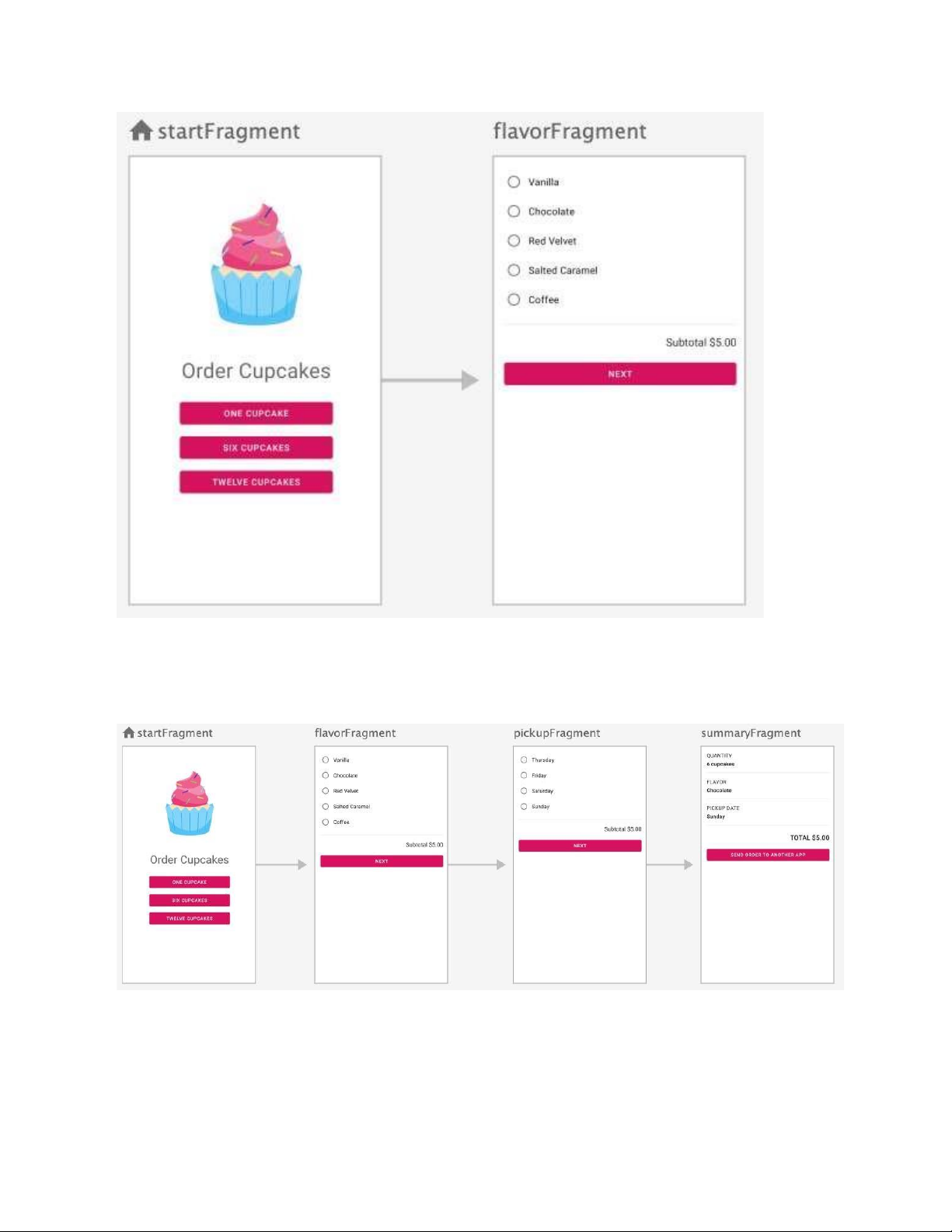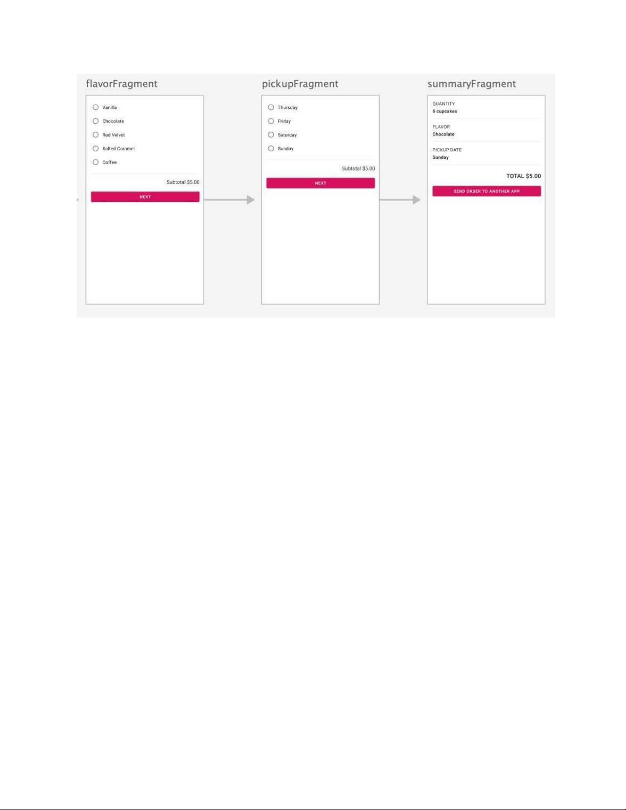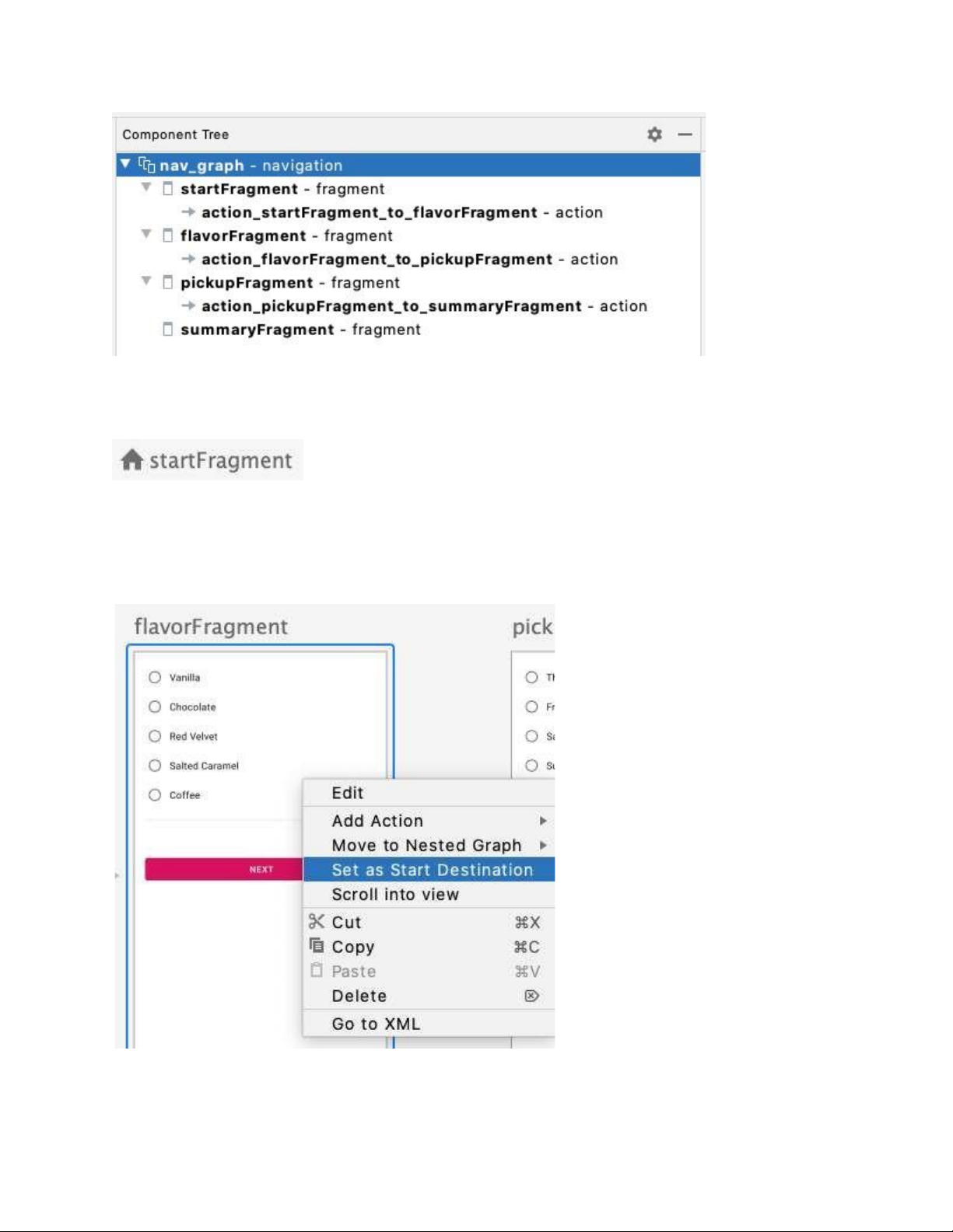 flavorFragment, pickupFragment, and summaryFragment) without Actions, which you