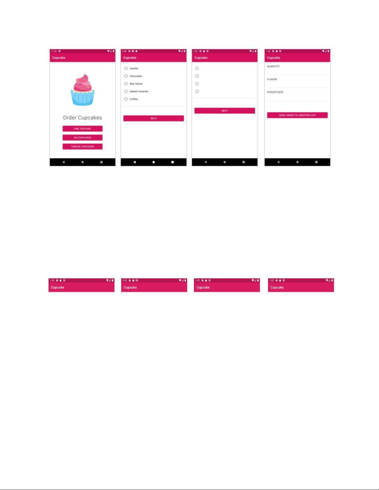 of this pathway, you will have completed the Cupcake app with the following screens. The user