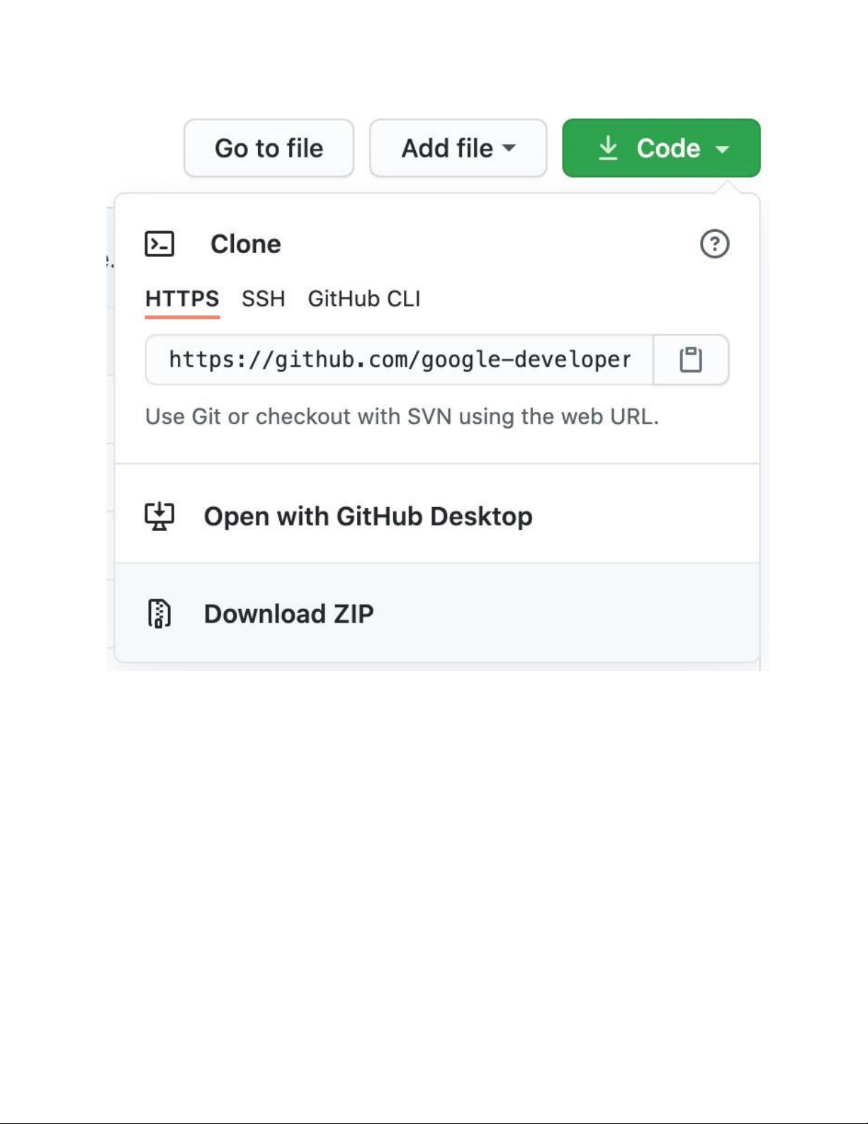 2. On the GitHub page for the project, click the Code button, which brings up a dialog.