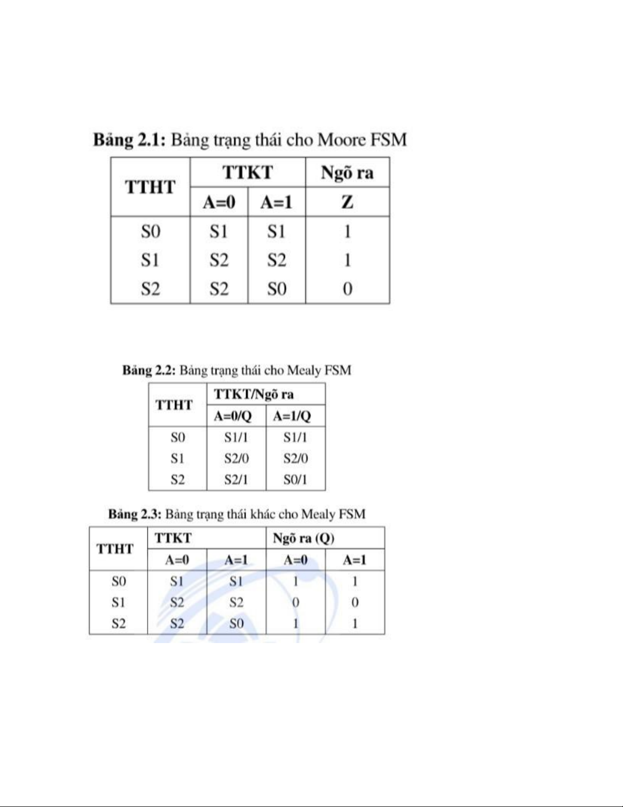 FSM. Nếu là Moore FSM thì ngõ ra sẽ nằm bên dưới trạng thái (hình 2.4a), còn nếu là