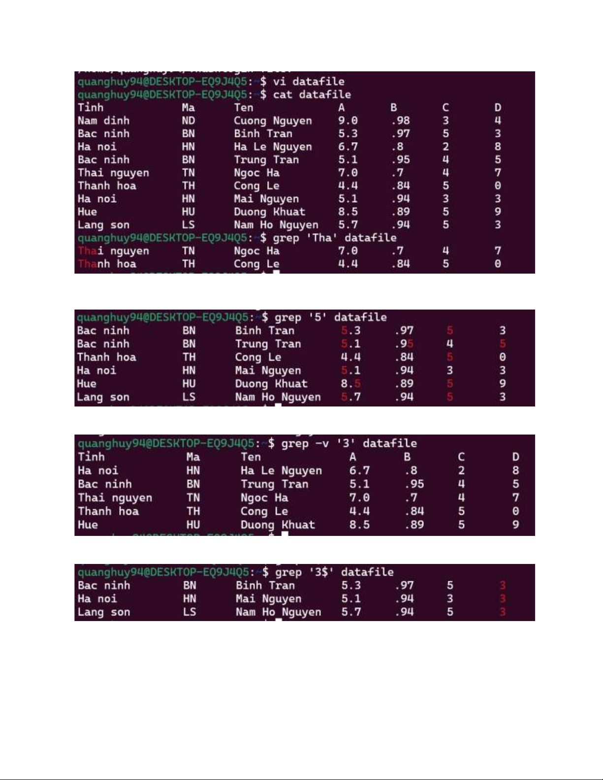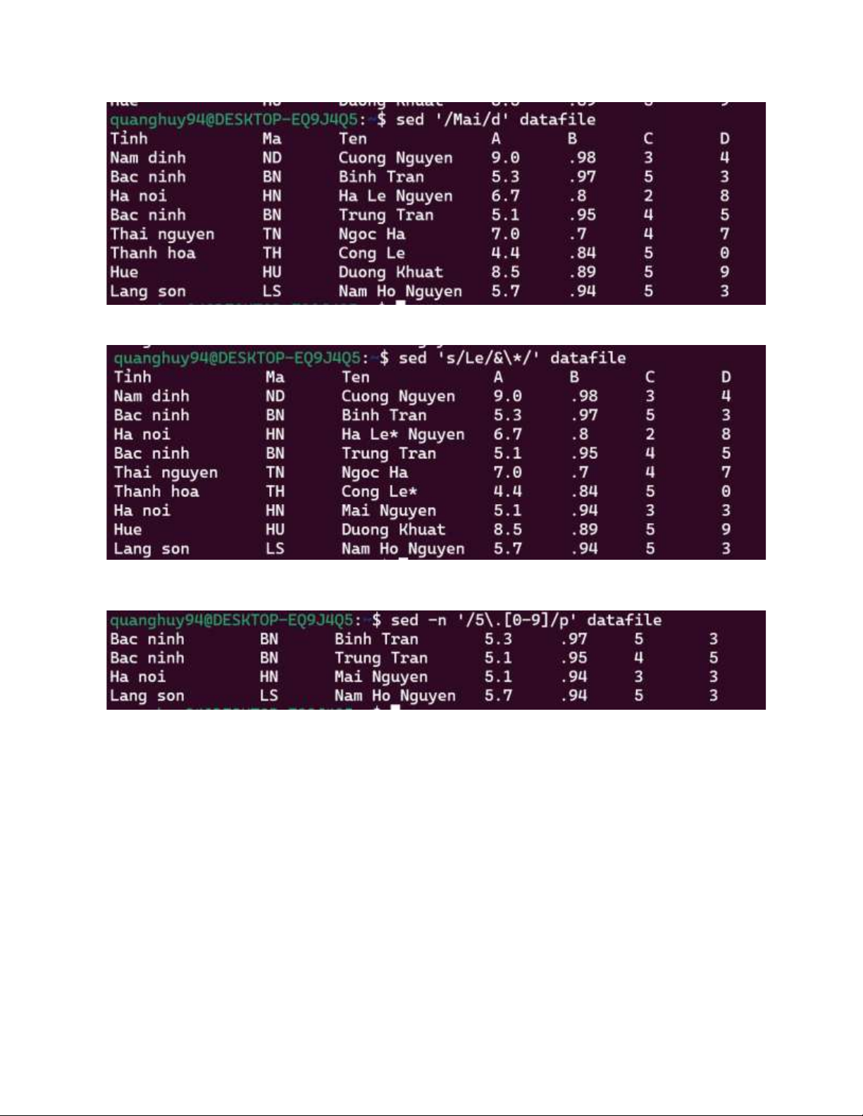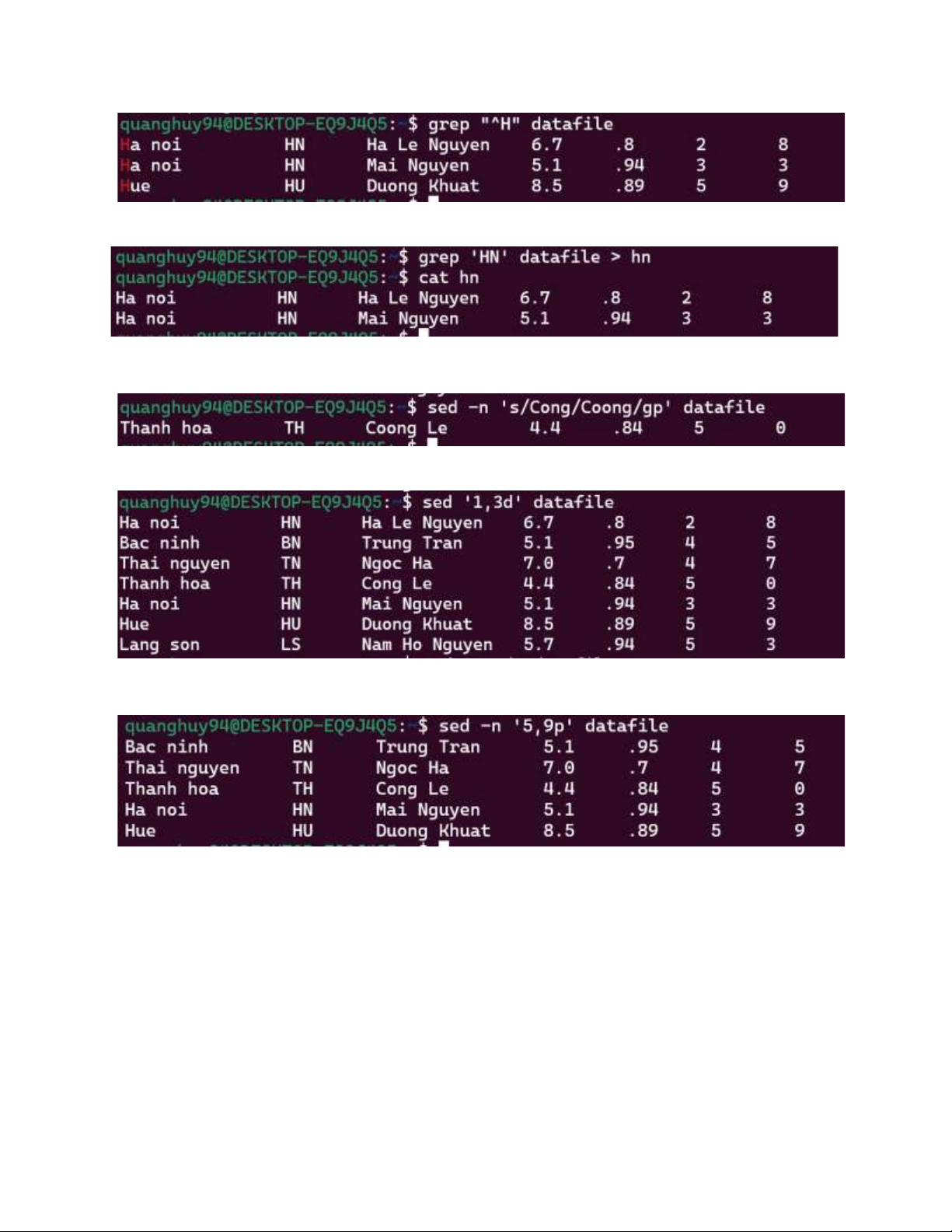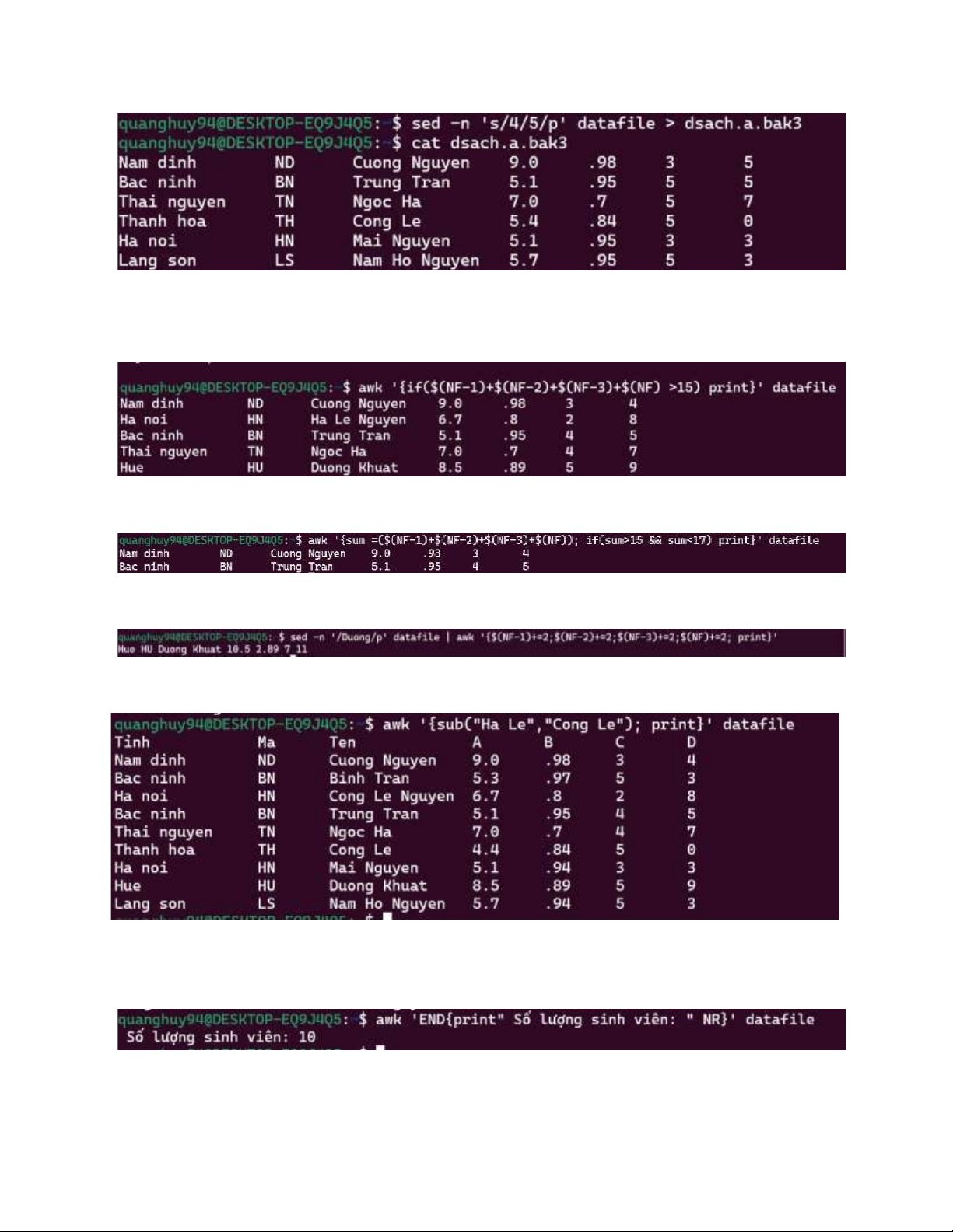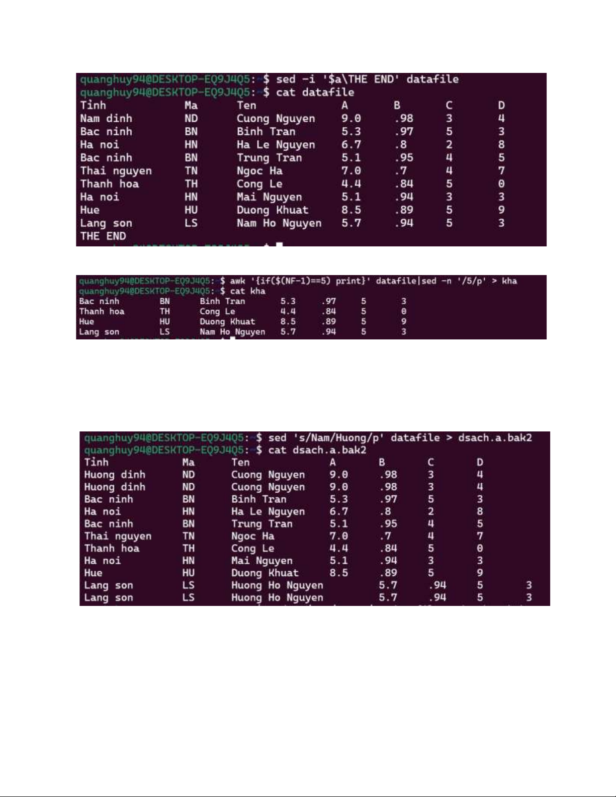 dsach.a.bak b, sed -n ‘/^V/p’ datafile > dsach.a.bak1 c, d, lOMoAR cPSD| 58833082 Bài 5: a, b, c, d, e, f, lOMoAR cPSD| 58833082 g, h, Câu 7: a, b, c,