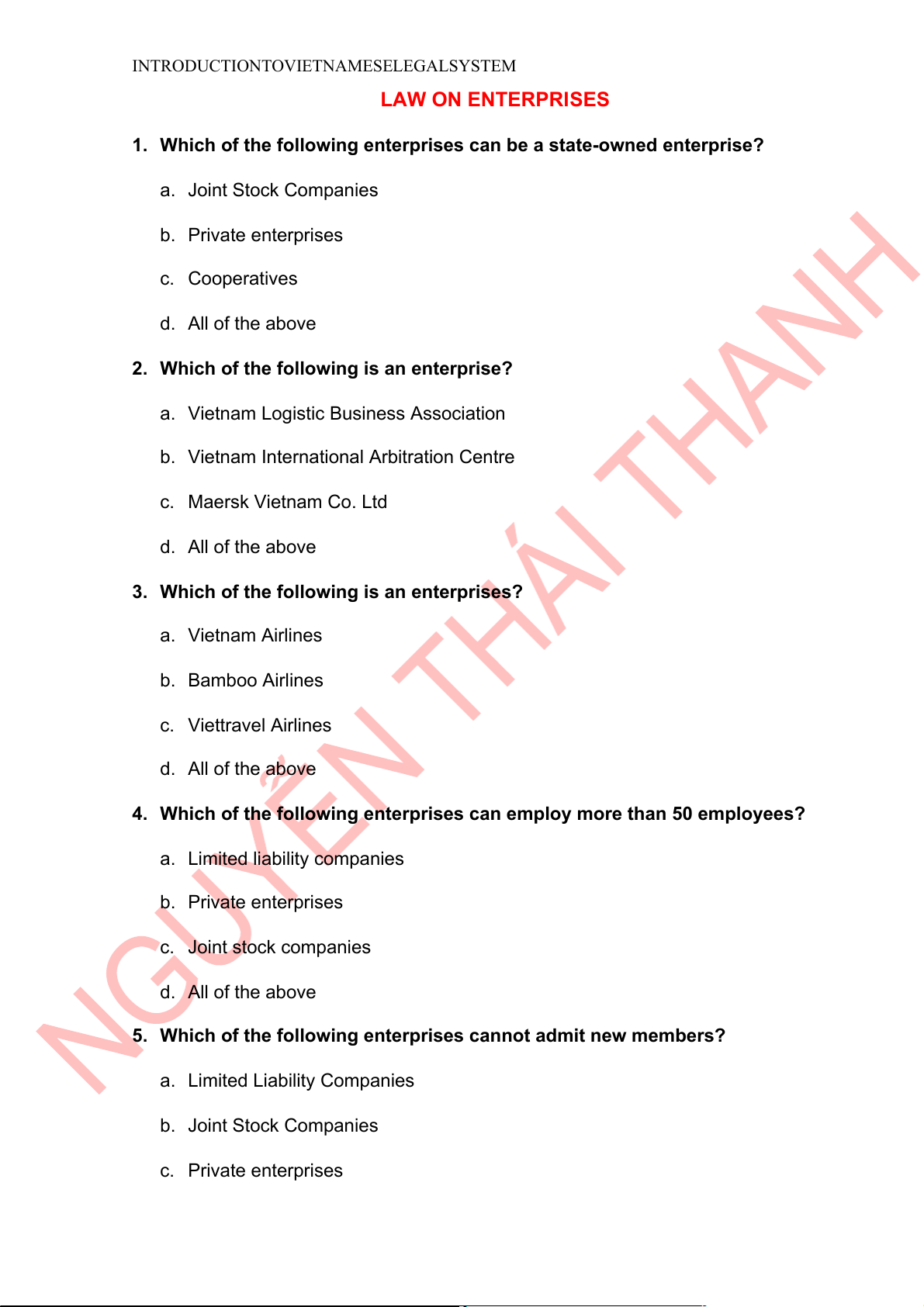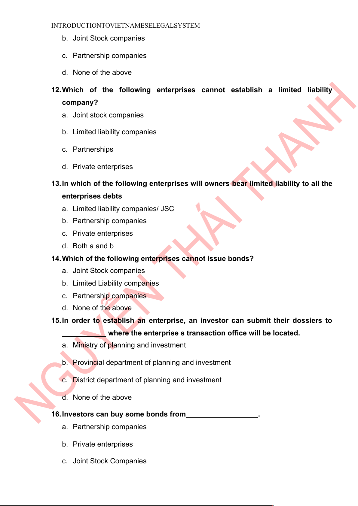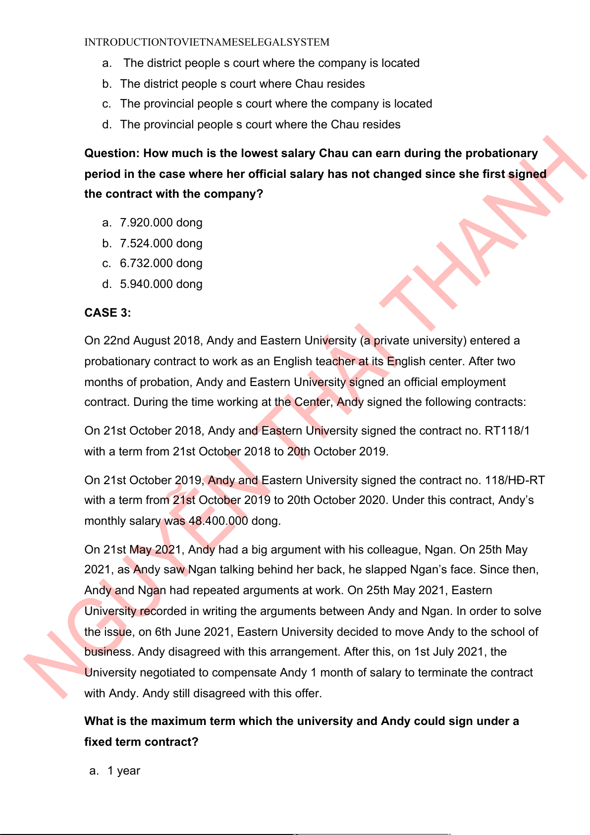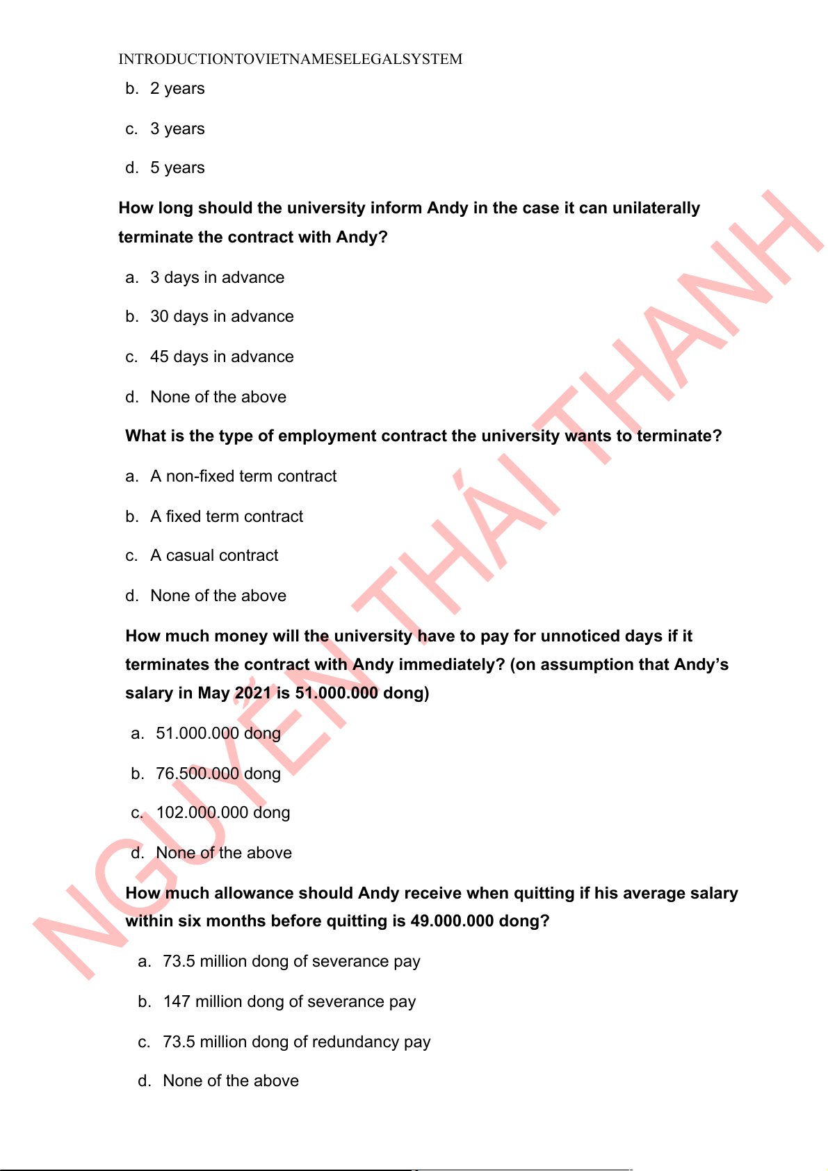 INTRODUCTION TO VIETNAMESE LEGAL SYSTEM b. 2 years c. 3 years d. 5 years