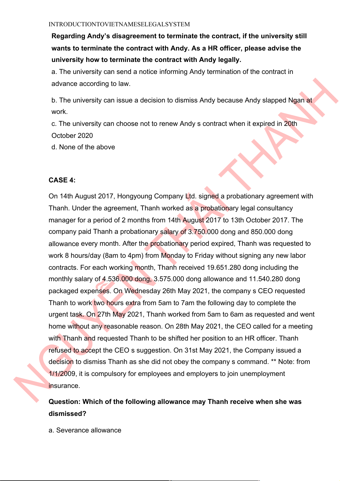 c. The university can choose not to renew Andy s contract when it expired in 20th October 2020 d. None of the above CASE 4: