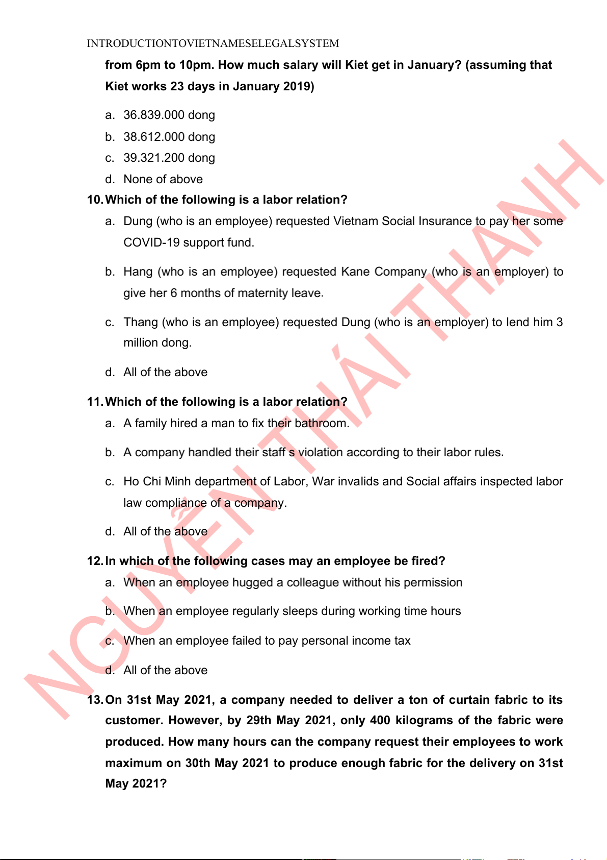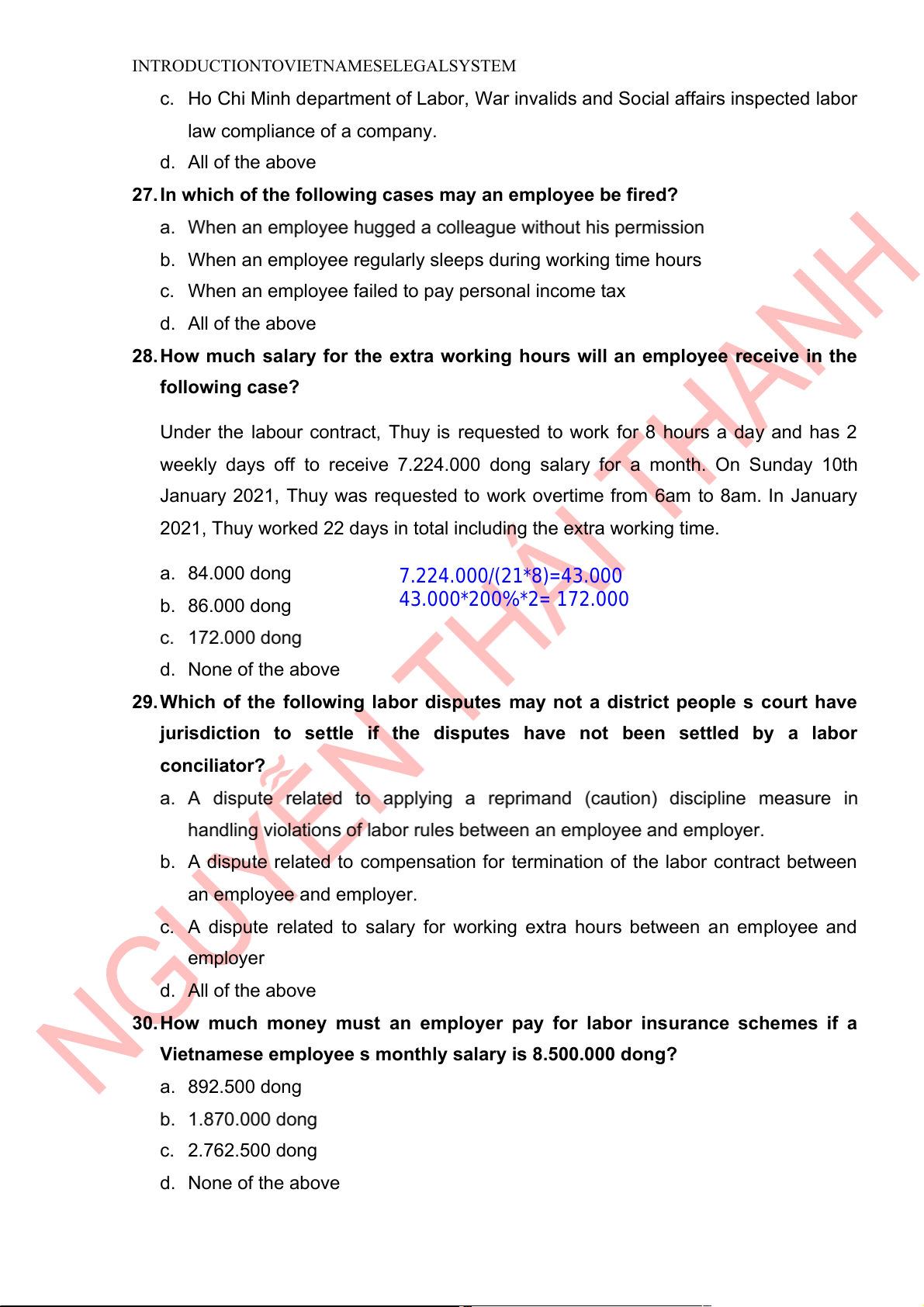 working days and the company s normal working hours were 8 hours/day from Monday to Friday) a. 297.000 dong b. 386.100 dong c. 3.861.000 dong d. 3.950.100 dong
