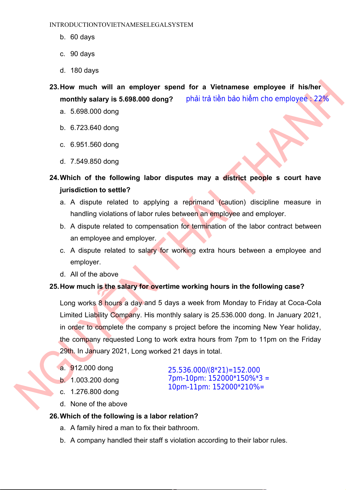 works 20 days in January 2022) a. 37.607.300 dong c. 39.782.180 dong d. None of above