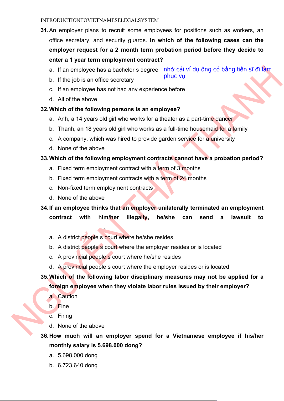 INTRODUCTION TO VIETNAMESE LEGAL SYSTEM điều 36.1