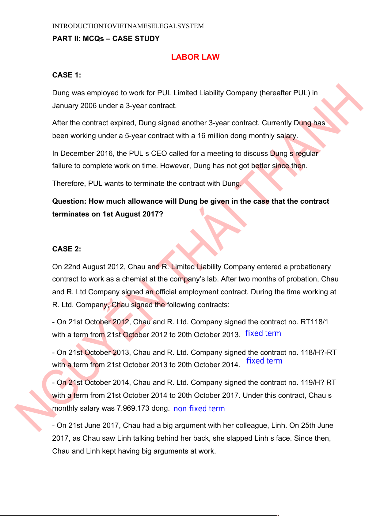 the contract with the company? a. 7.920.000 dong b. 7.524.000 dong c. 6.732.000 dong d. 5.940.000 dong CASE 3: