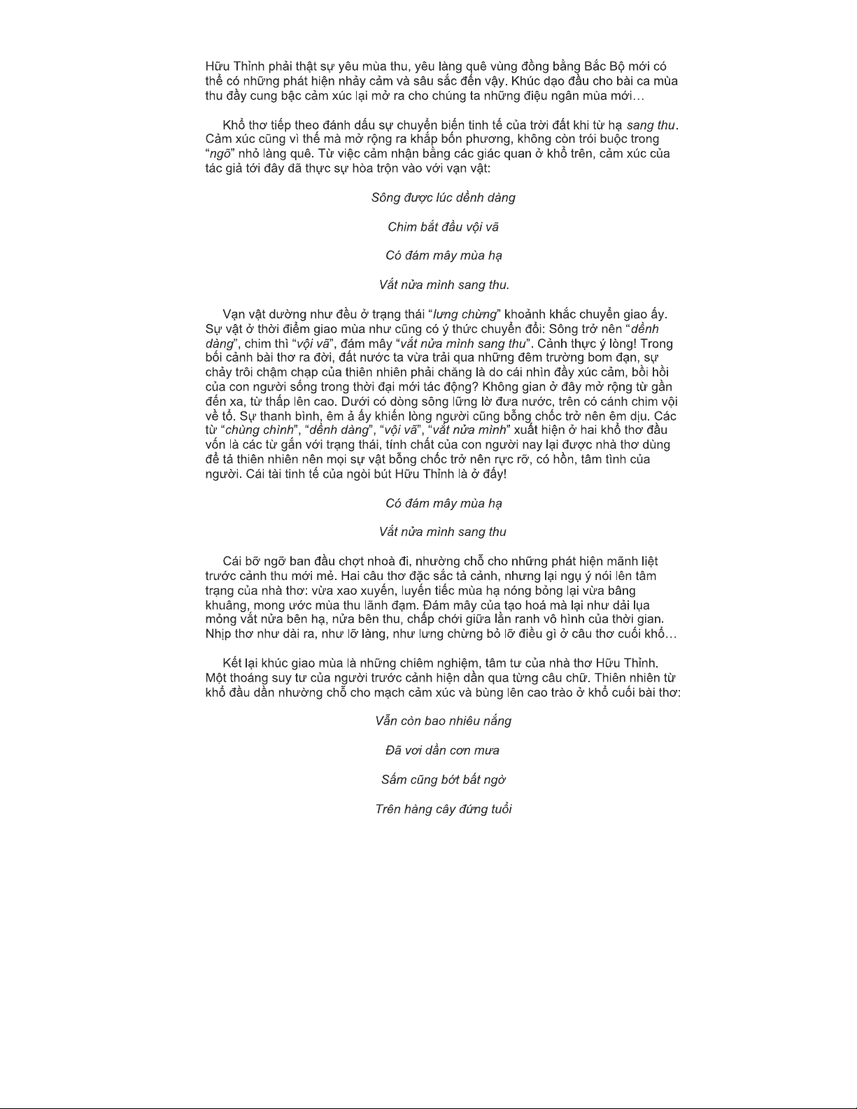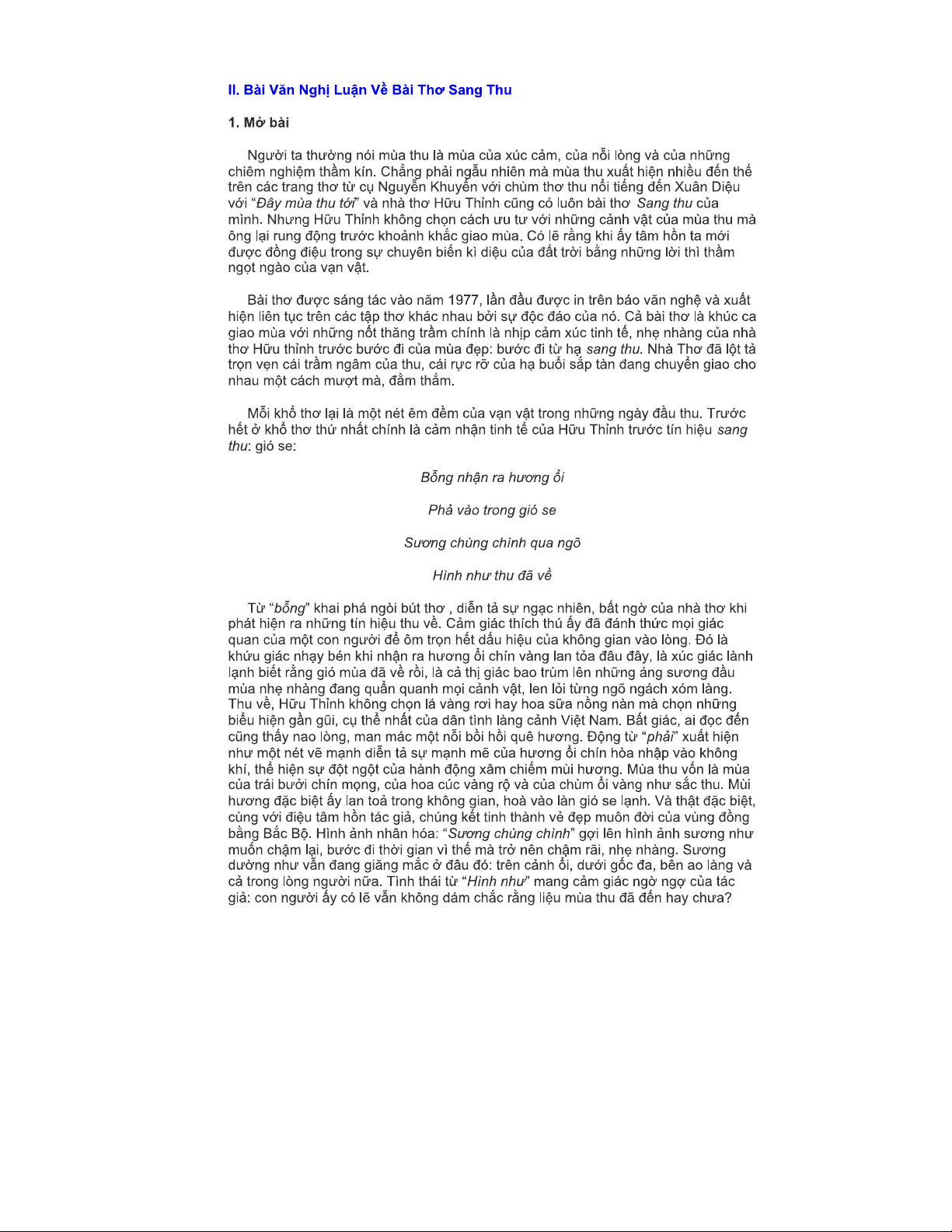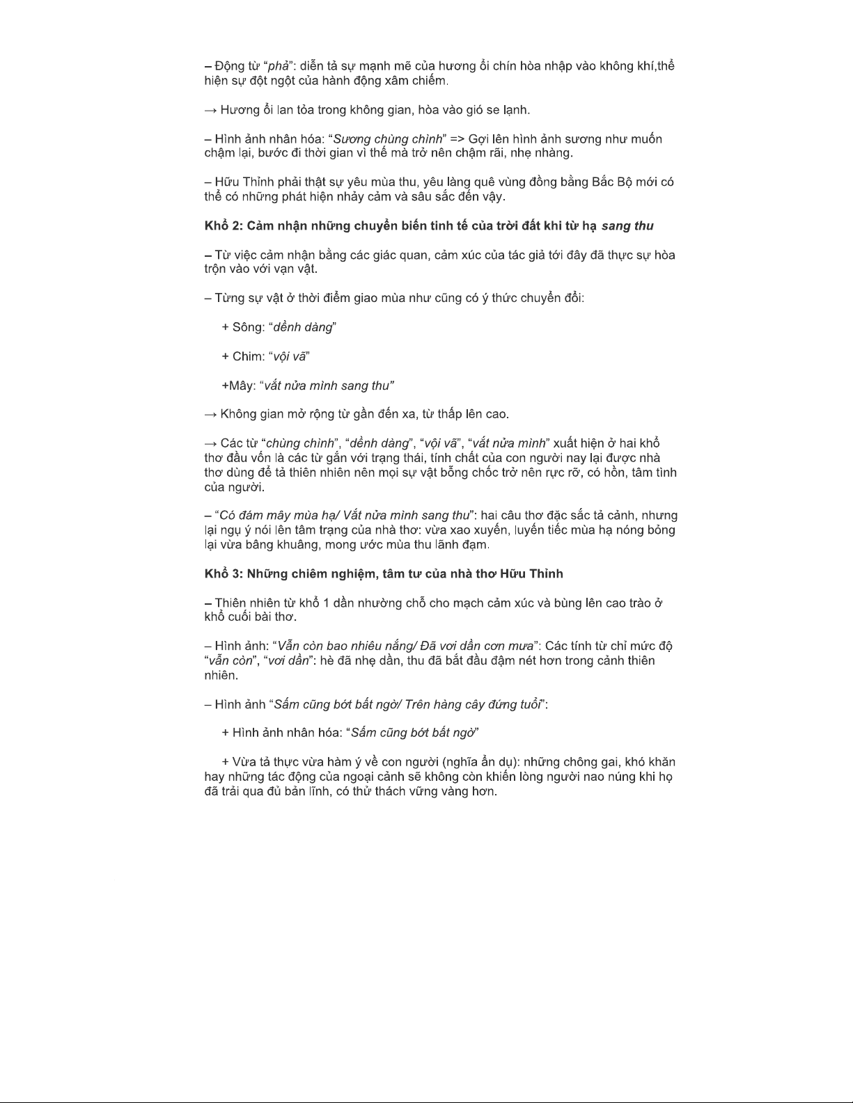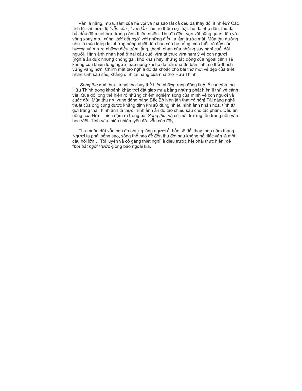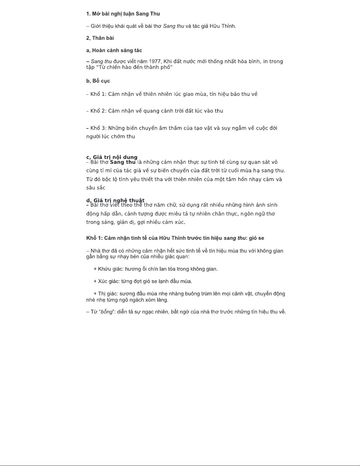 LẬP DÀN Ý VÀ VĂN NGHỊ LUẬN VỀ THƠ SANG THU (VĂN 12)