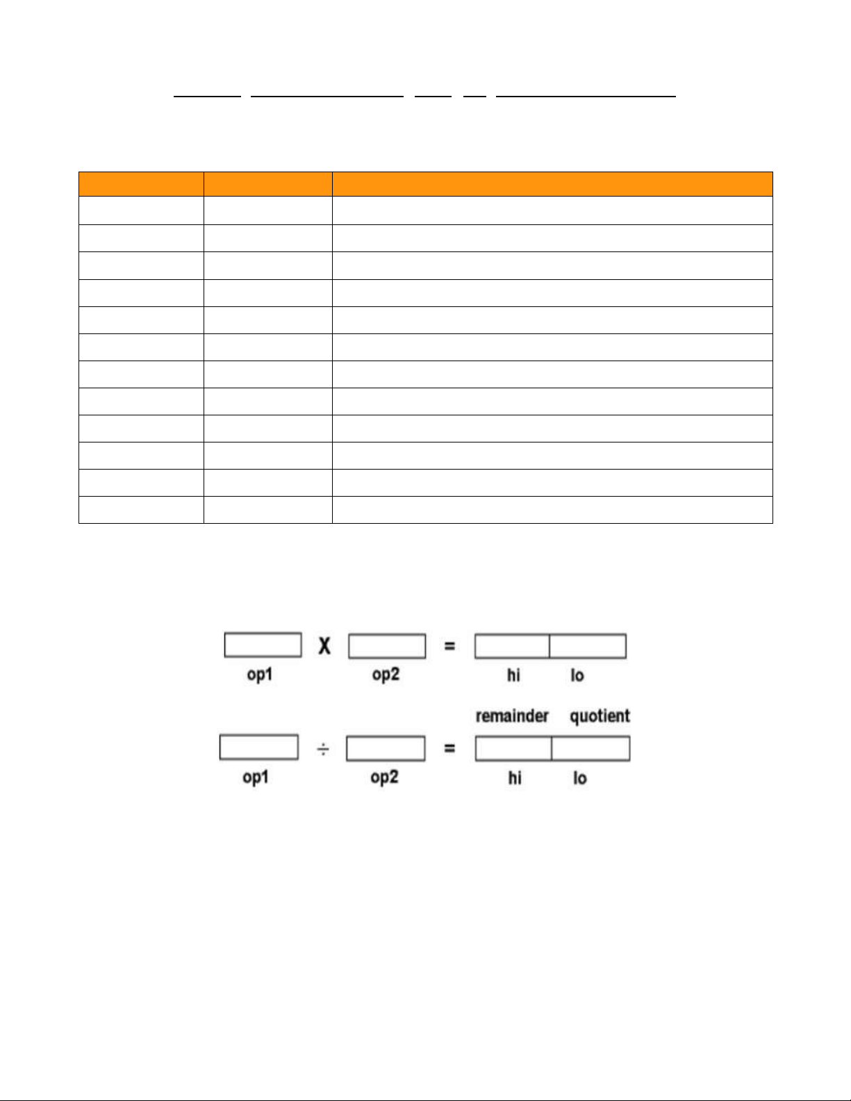 Rd = Rs - Rt (kết quả không dấu) mult Rs, Rt (Hi,Lo) = Rs * Rt div Rs, Rt