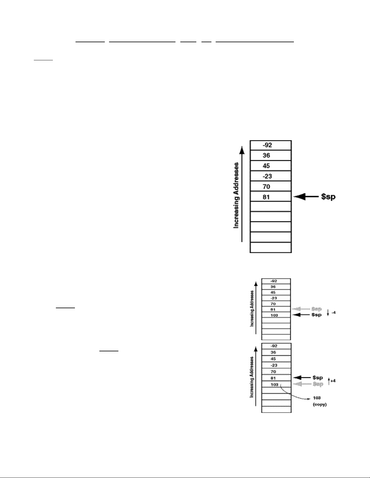 • push: giảm $sp đi 4, lưu giá trị vào ô nhớ mà $sp chỉ đến.