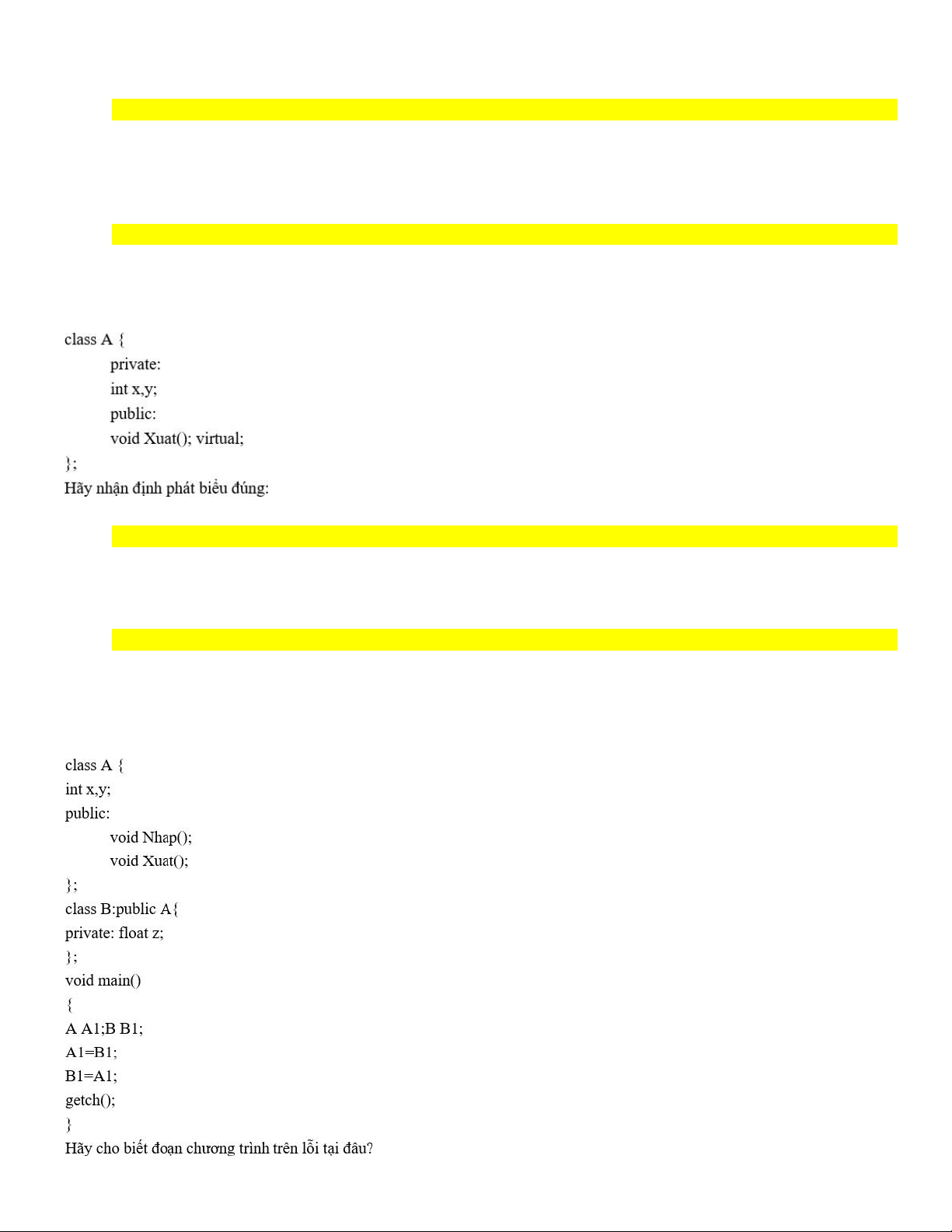 Câu 98. Cho đoạn chương trình sau: Xuat là phương thức ảo.