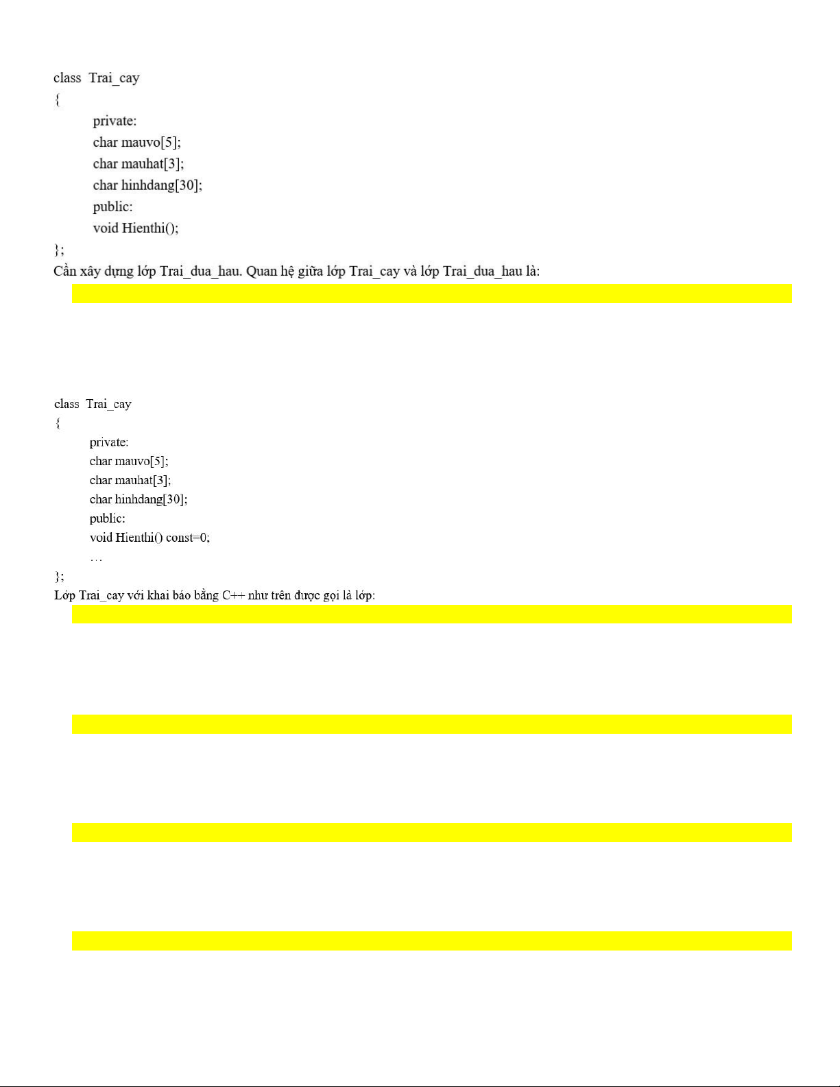 Cơ chế cho thấy một hàm có thể có nhiều thể hiện khác nhau ở từng thời điểm. Câu 7. Tính kế thừa là: