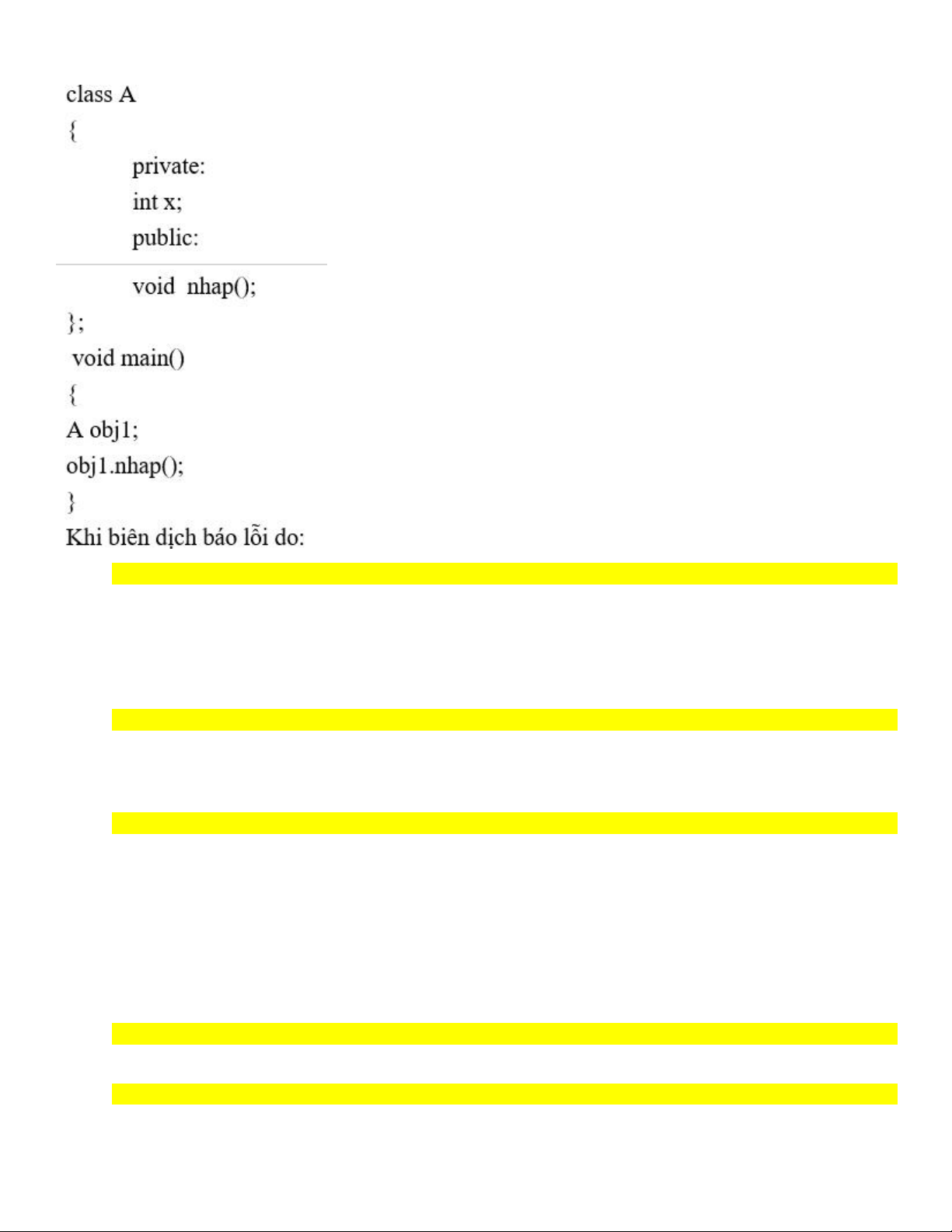 Không thể truy cập vào thành phần private của lớp. Chưa khai báo x.
