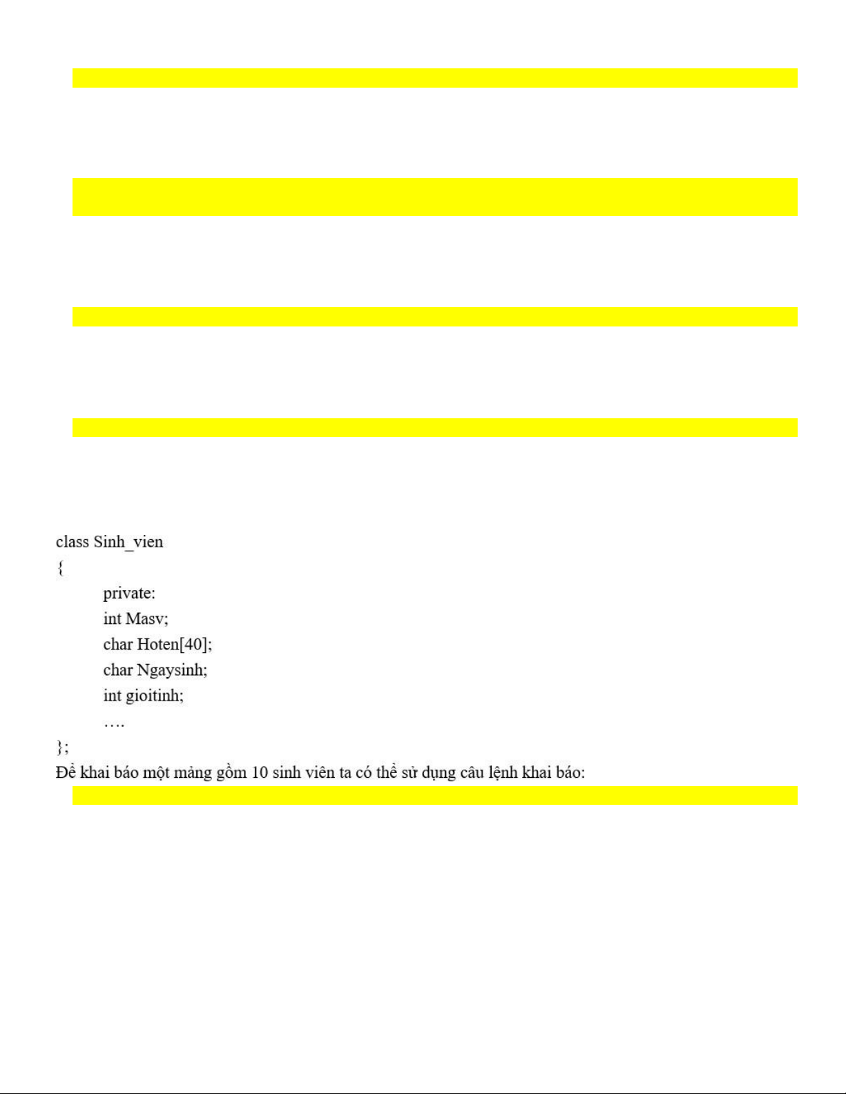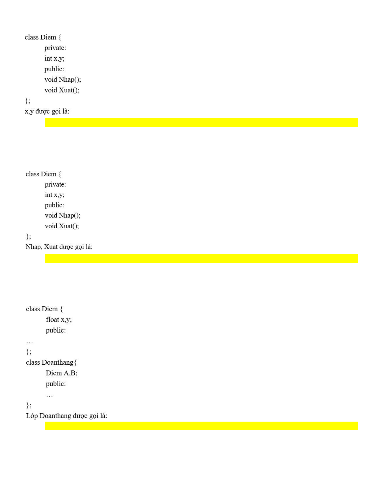 Câu 26. Khi khai báo và xây dựng một lớp ta cần phải xác định rõ thành phần: