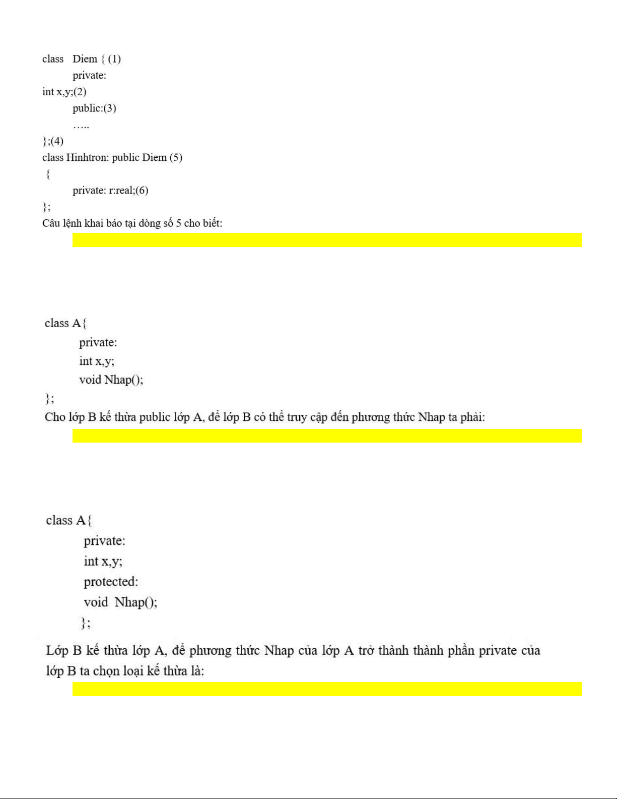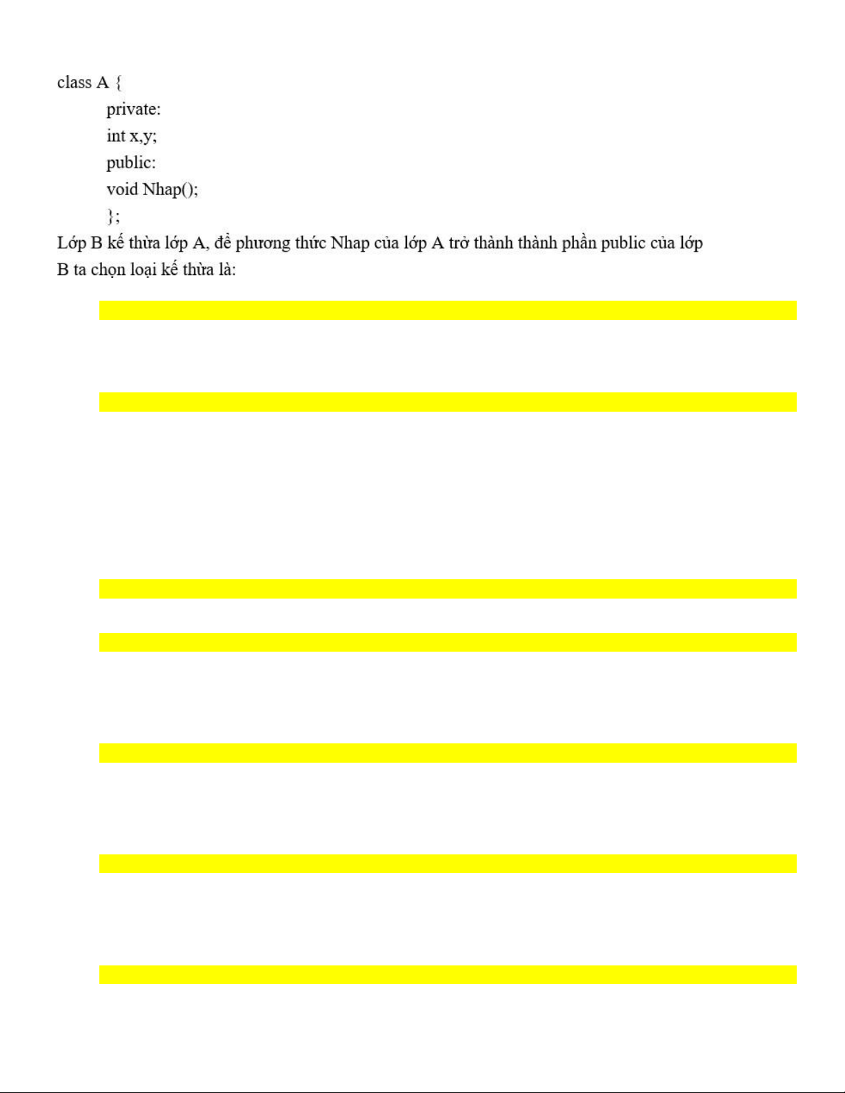 Câu 85. Trong kế thừa có thể kế thừa tối đa: