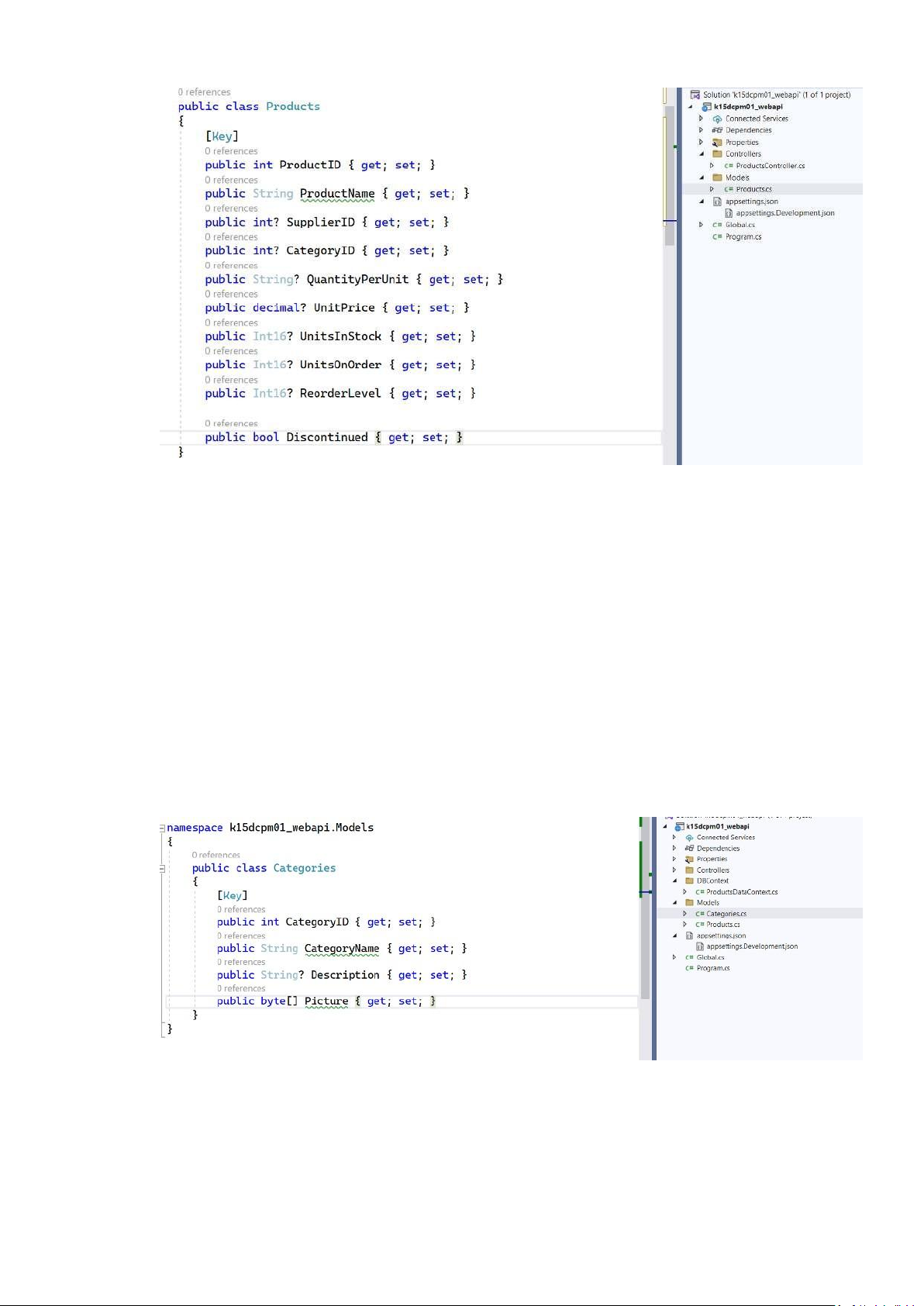 string conStr = builder.Configuration.GetConnectionString("Northwind_conn"); return conStr; } Tạo các class models lOMoAR cPSD| 58675420 public class Products { [Key]