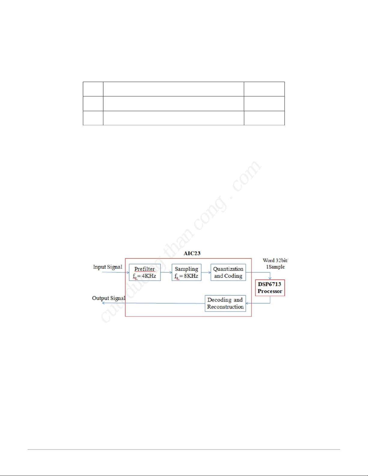đưa vào AIC23 và lấy mẫu với tần số 8KHz. Để tránh hiện tượng aliasing, chip AIC23 có thêm
