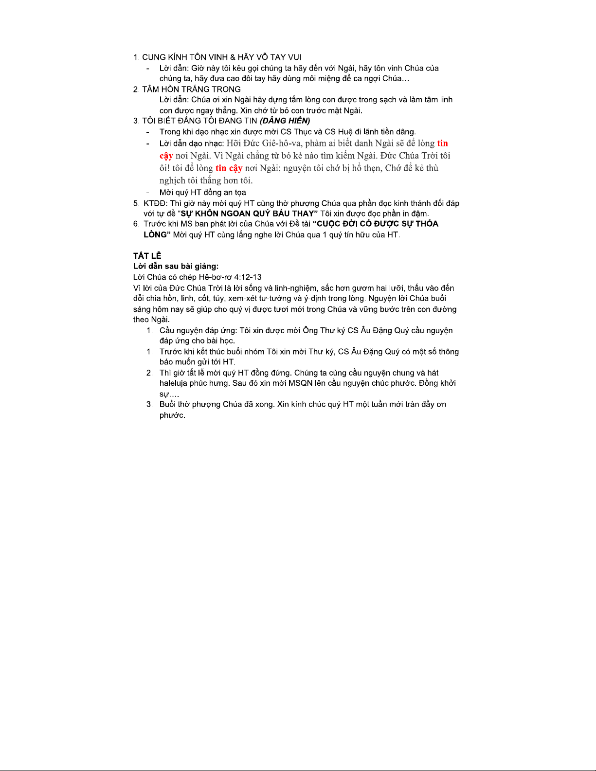 Lễ Thờ Phượng Chúa - MSQN: Kinh Thánh, Cầu Nguyện và Tôn Vinh
