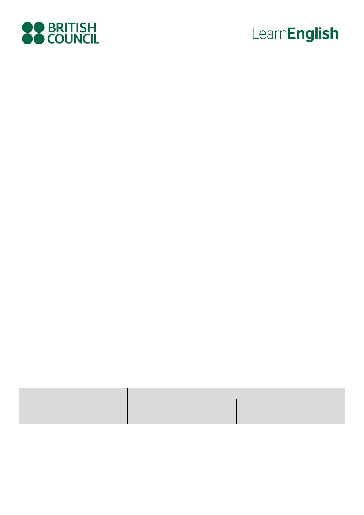 Staff: Lovely. See you tomorrow, then. Jamie: Thanks! Bye! Answers Preparation task 7.30 8.00 8.30 Eight Eight thirty Seven thirty Eight o’clock Half past eight Half eight Task 1 1. c 2. c 3. a 4. b 5. b 6. c Task 2