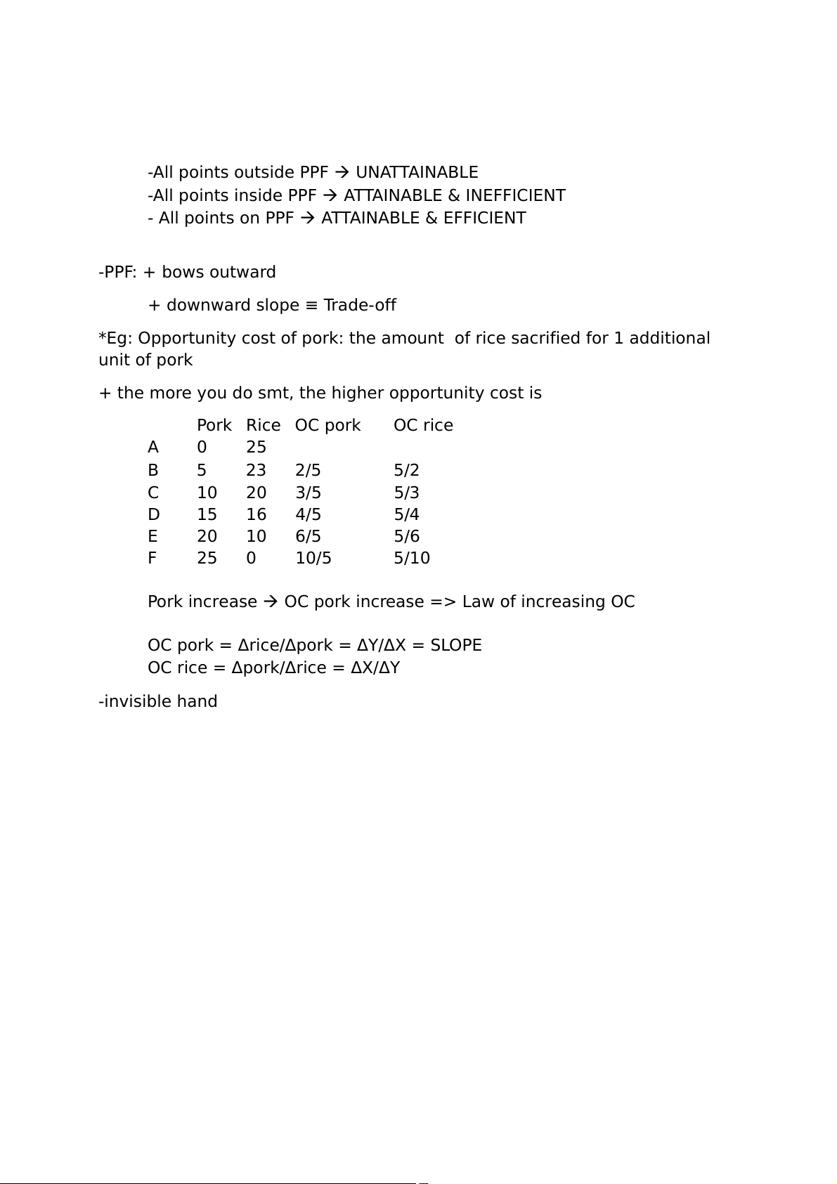 *Eg: Opportunity cost of pork: the amount of rice sacrified for 1 additional unit of pork