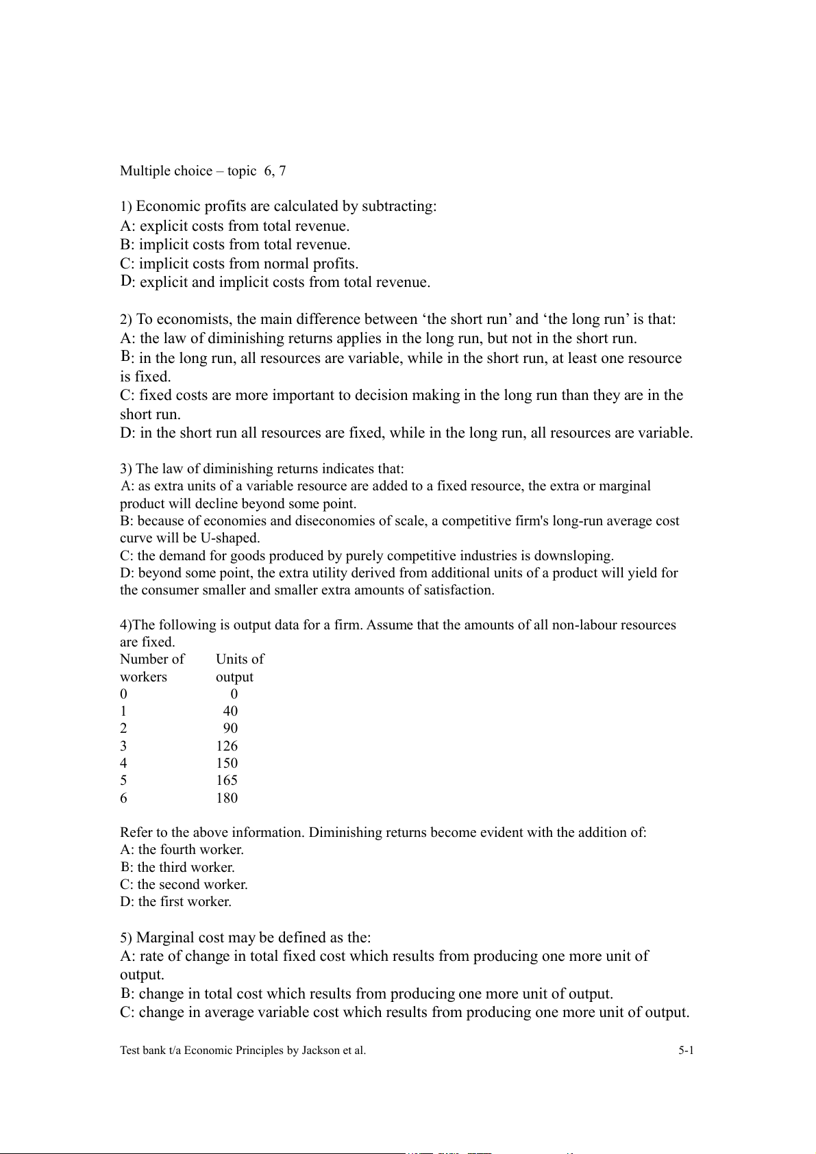 Test bank t/a Economic Principles by Jackson et al. 5-1