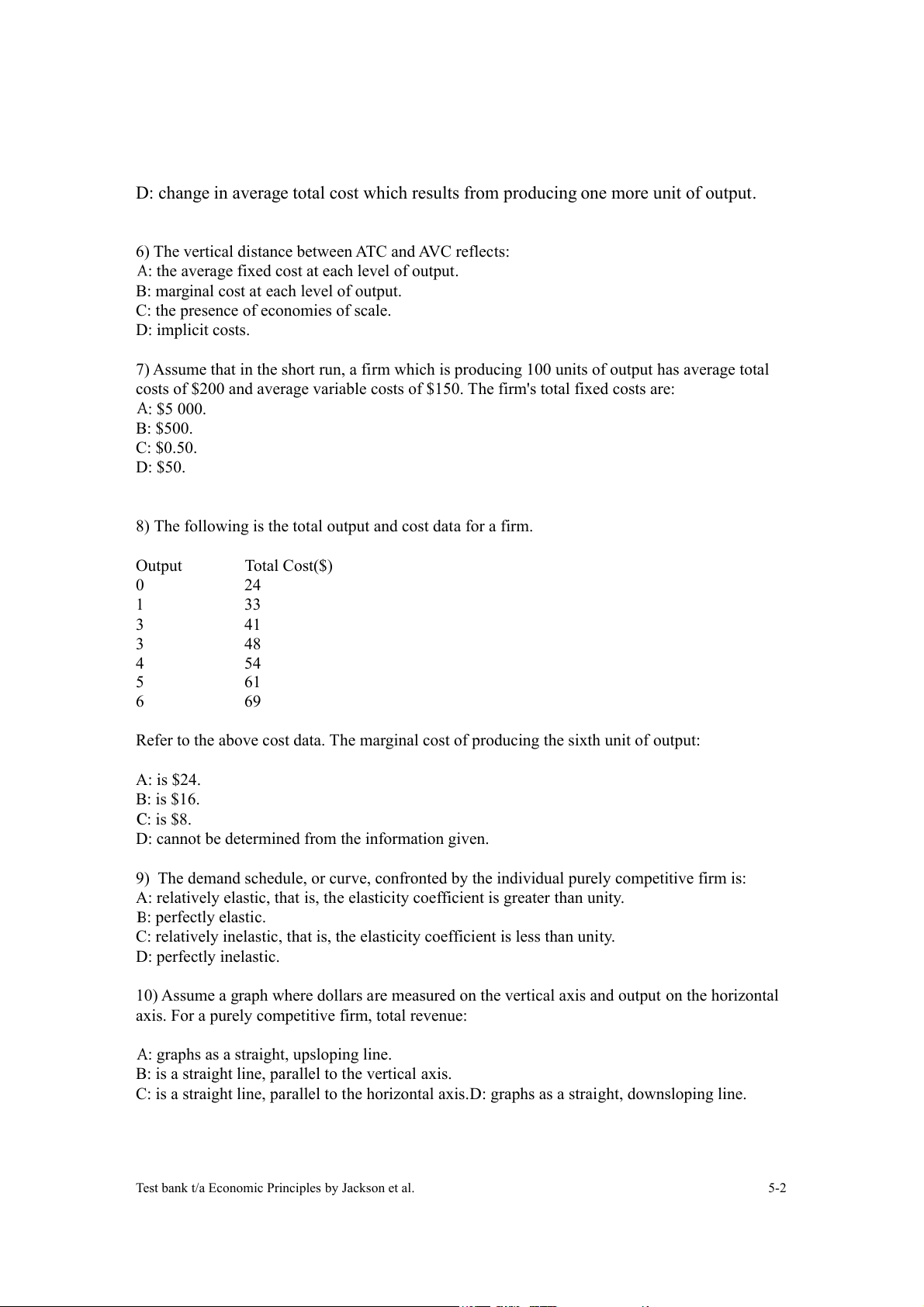 Test bank t/a Economic Principles by Jackson et al. 5-2