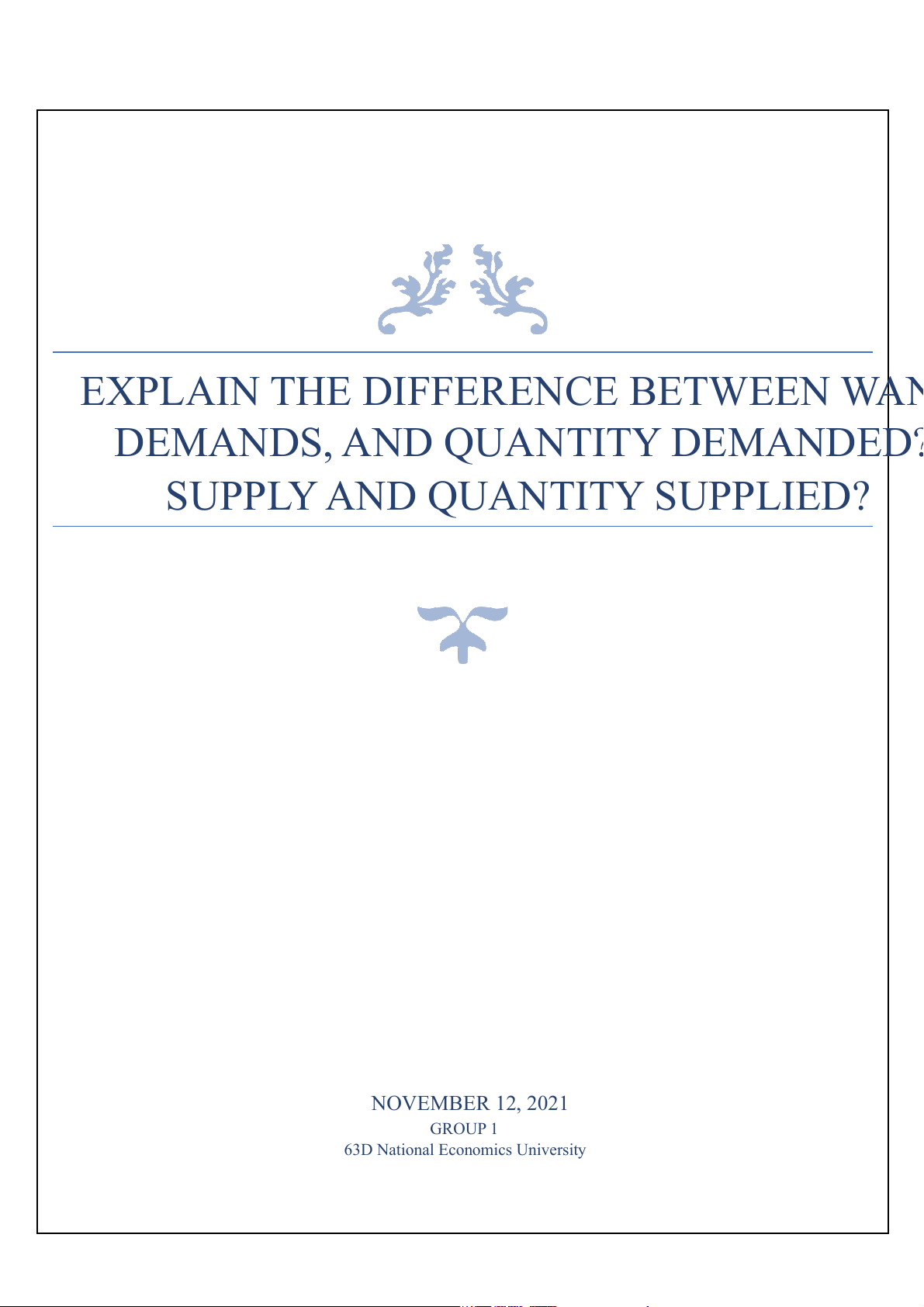 DEMANDS, AND QUANTITY DEMANDED? SUPPLY AND QUANTITY SUPPLIED? NOVEMBER 12, 2021 GROUP 1