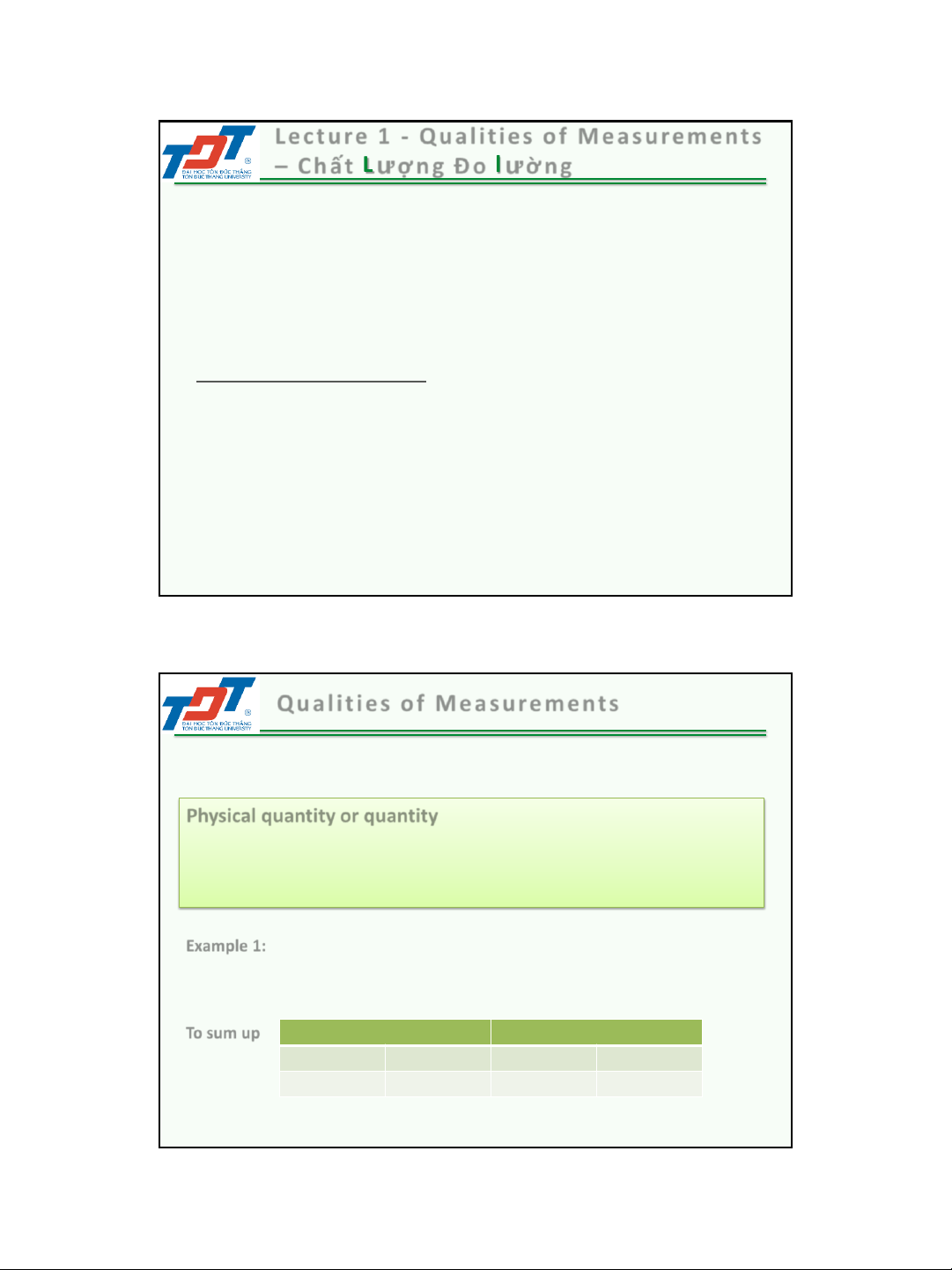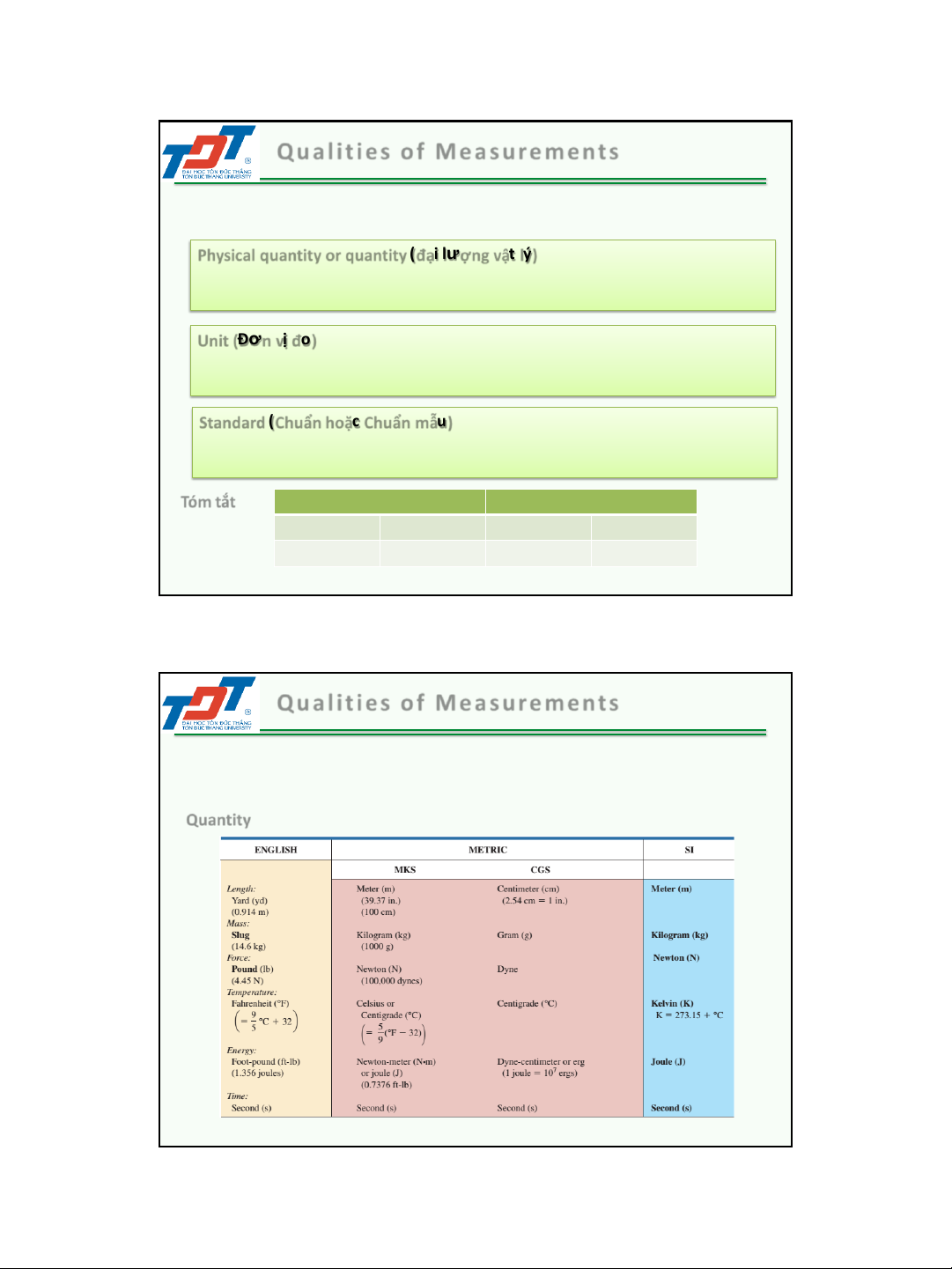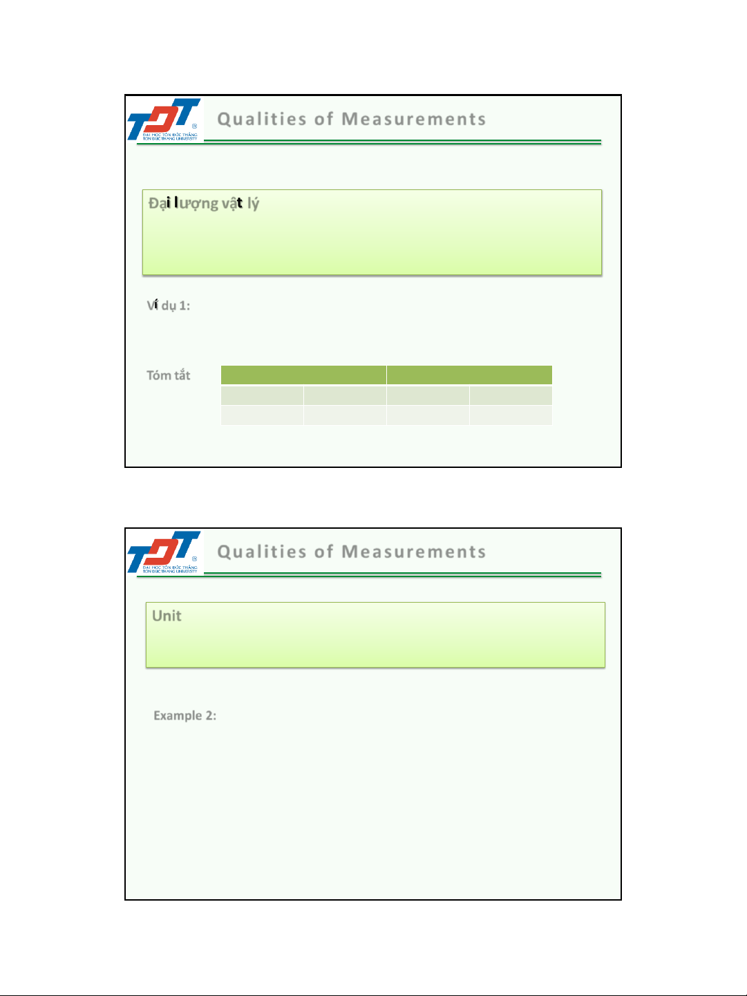 Q u a l i t i e s o f M e a s u re m e nt s Đơn vị đo