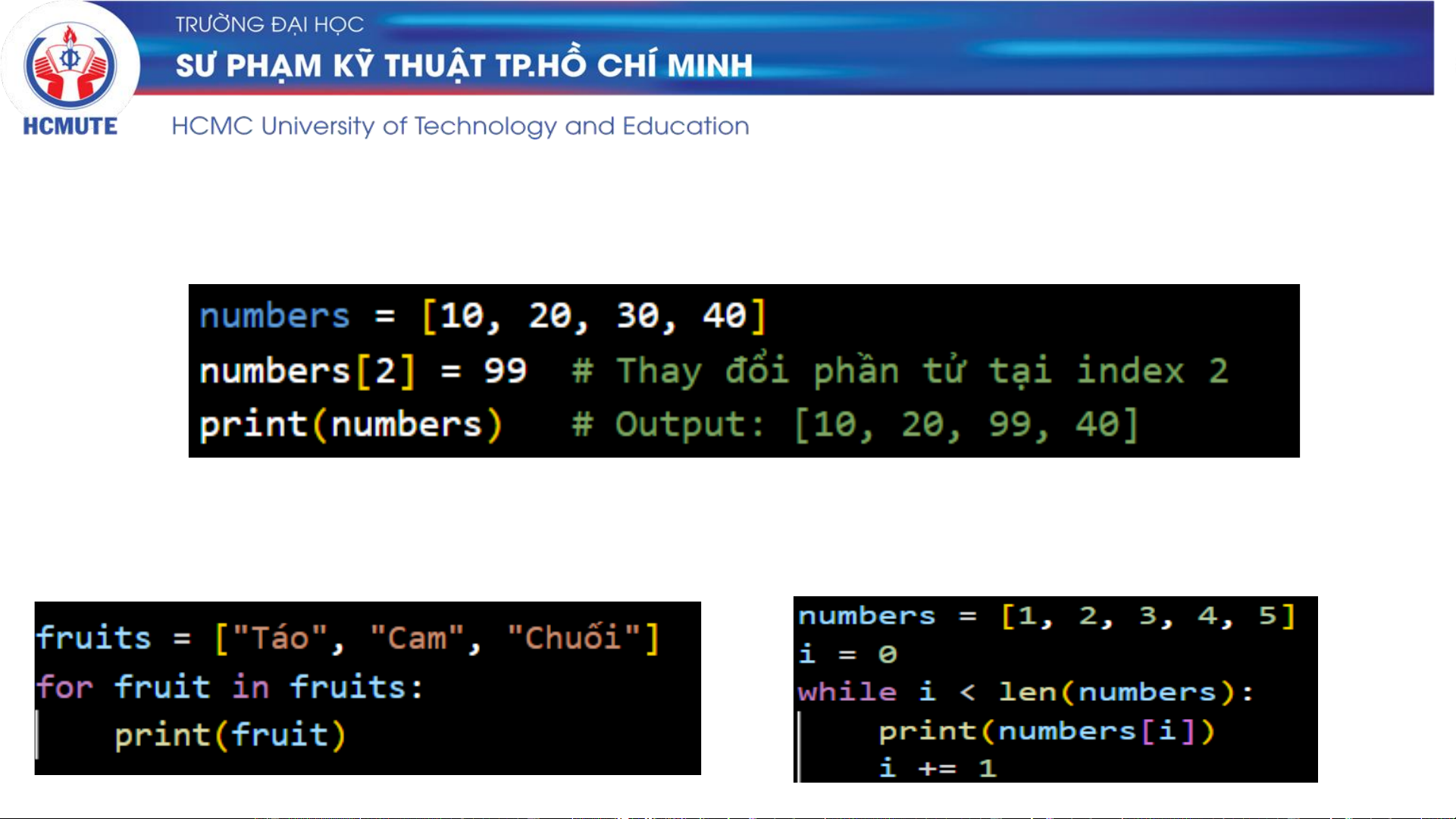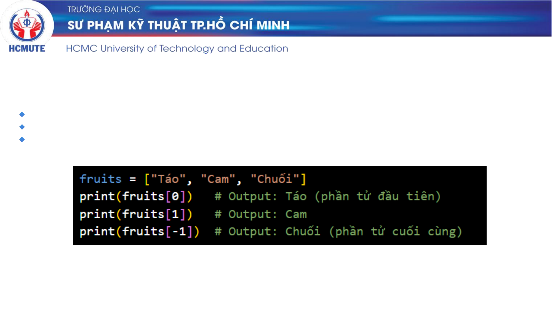Có thể dùng chỉ mục âm để truy cập từ cuối danh sách. 4