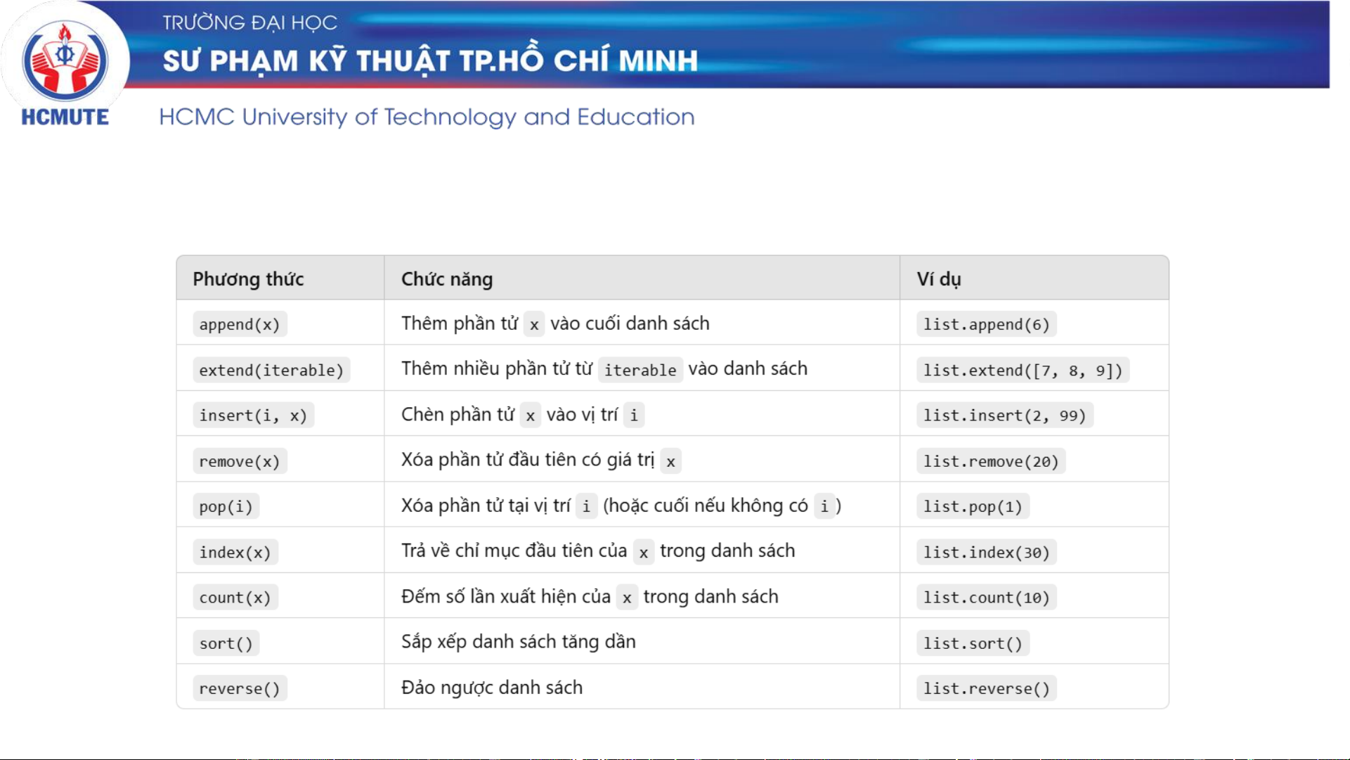Các phương thức quan trọng của List 9 Ví dụ: 10