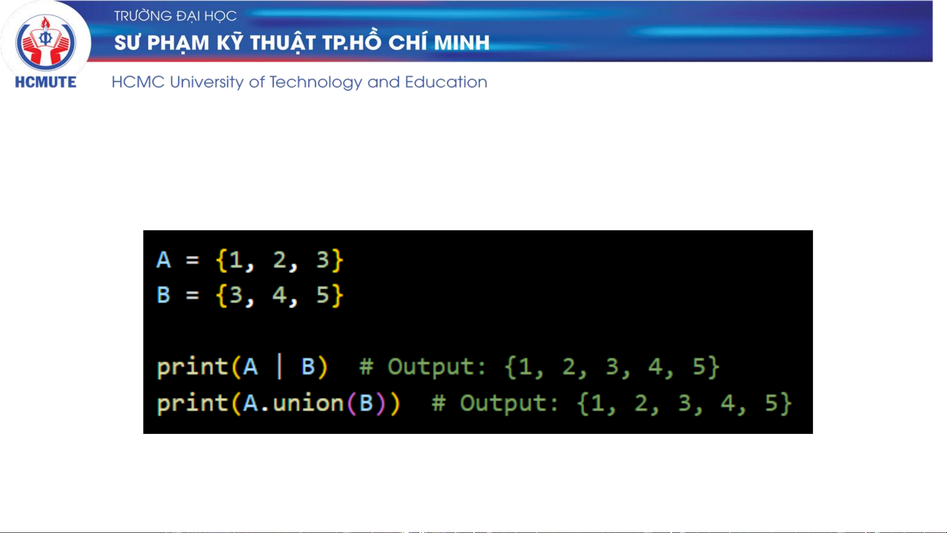c. Các phép toán tập hợp trên Set 1. Hợp (| hoặc union()) 6