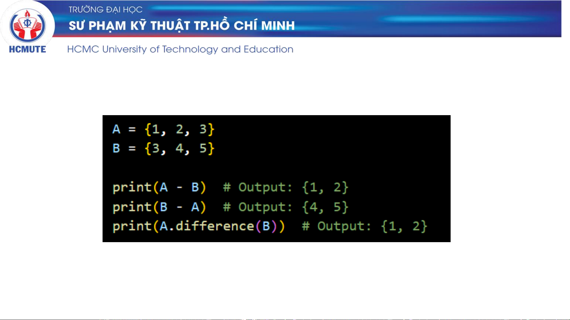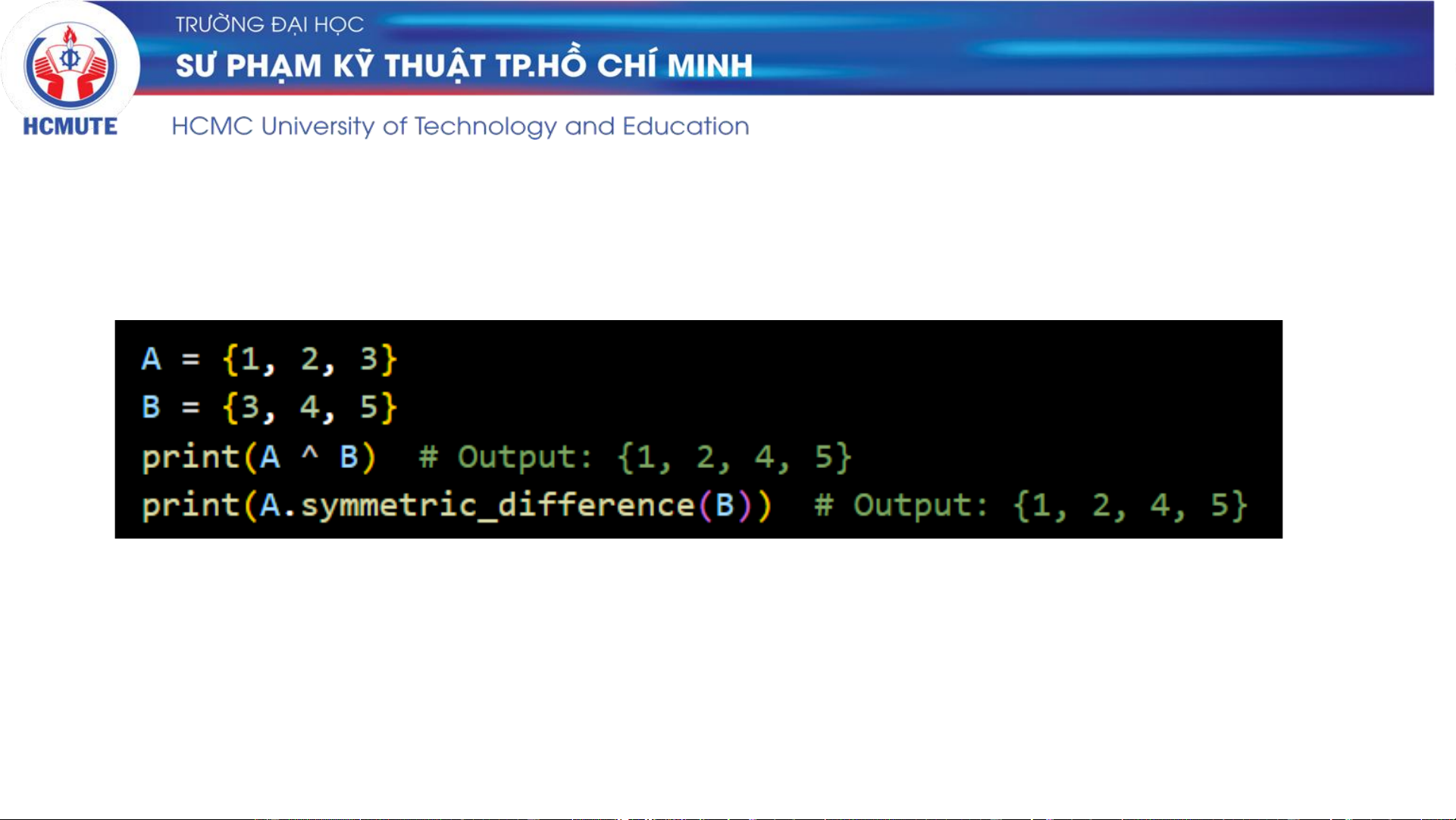 4. Hiệu đối xứng (^ hoặc symmetric_difference()) 9 d. Ứng dụng