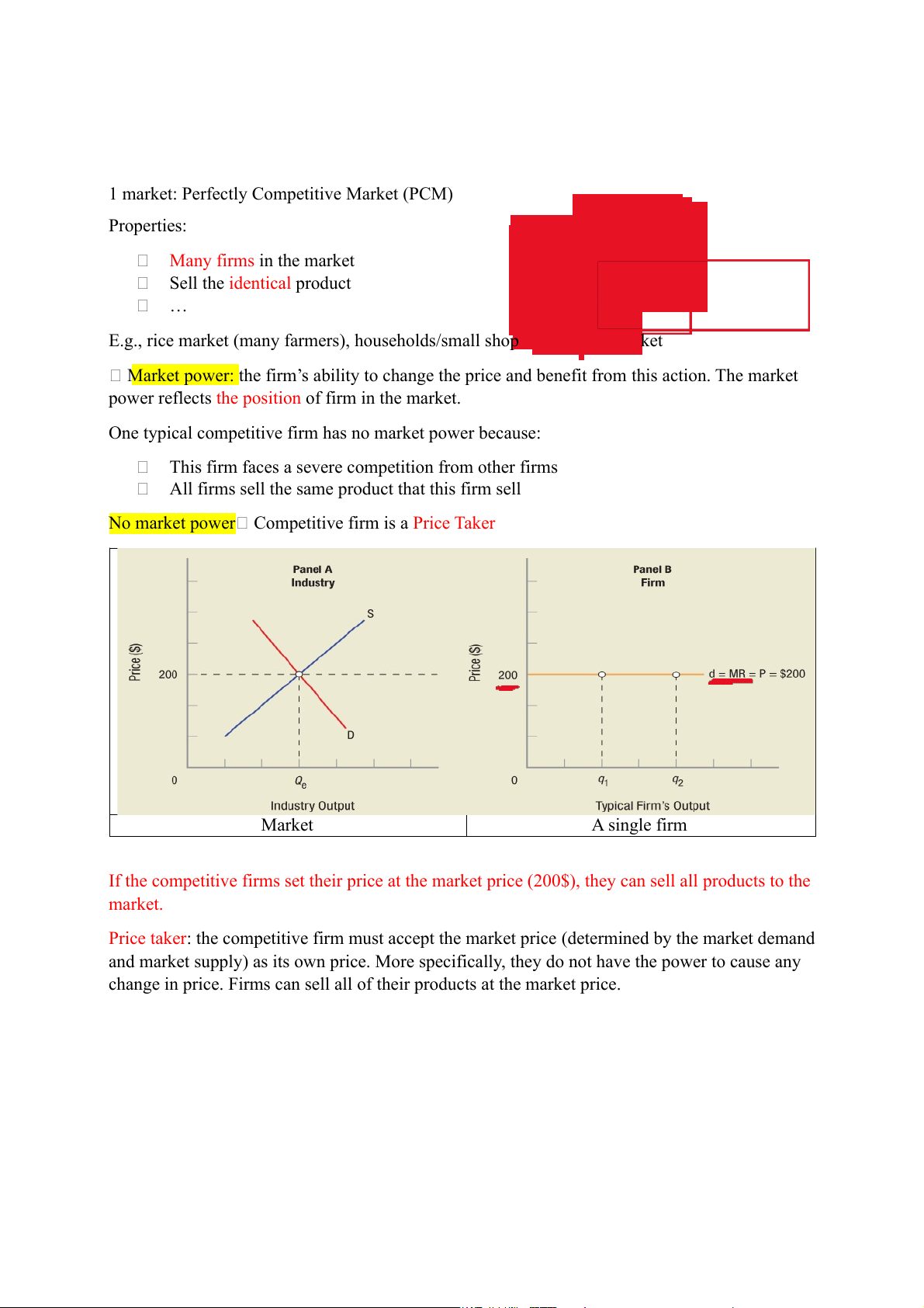 No market power Competitive firm is a Price Taker Market A single firm