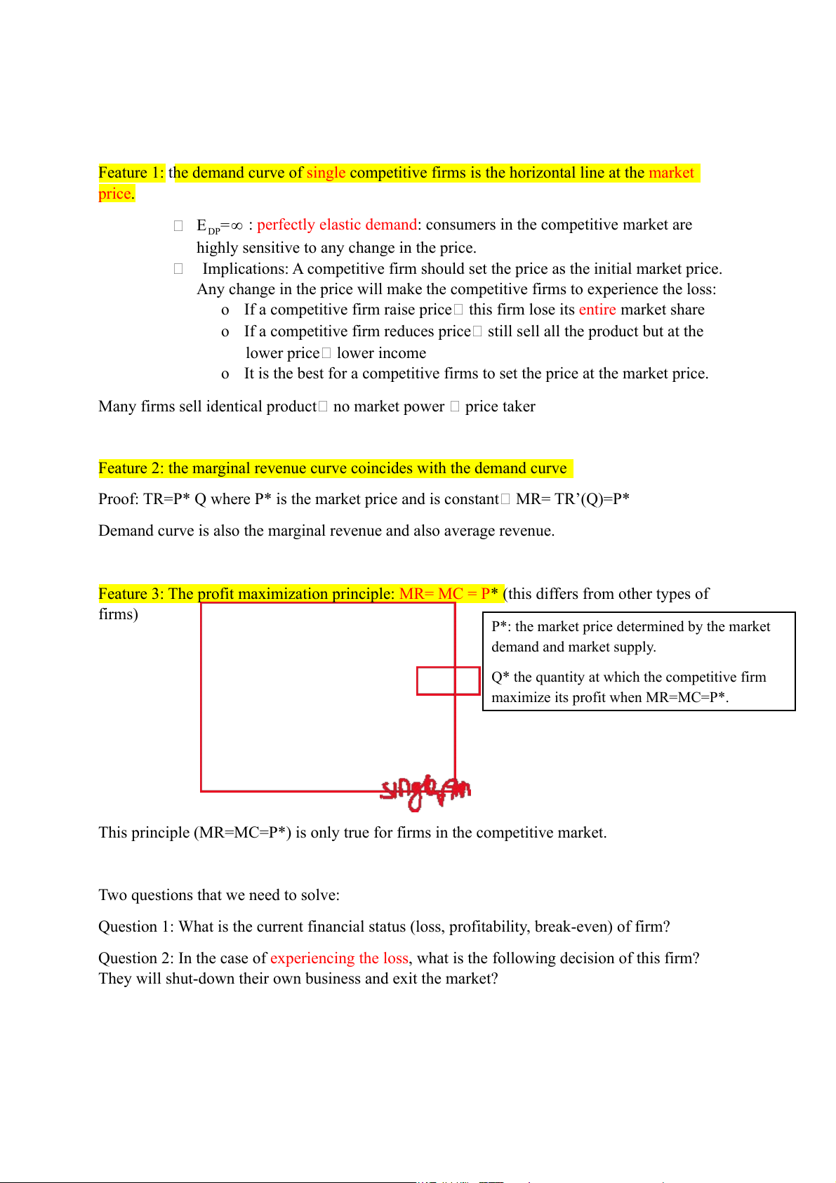 Feature 3: The profit maximization principle: MR= MC = P* (this differs from other types of firms)