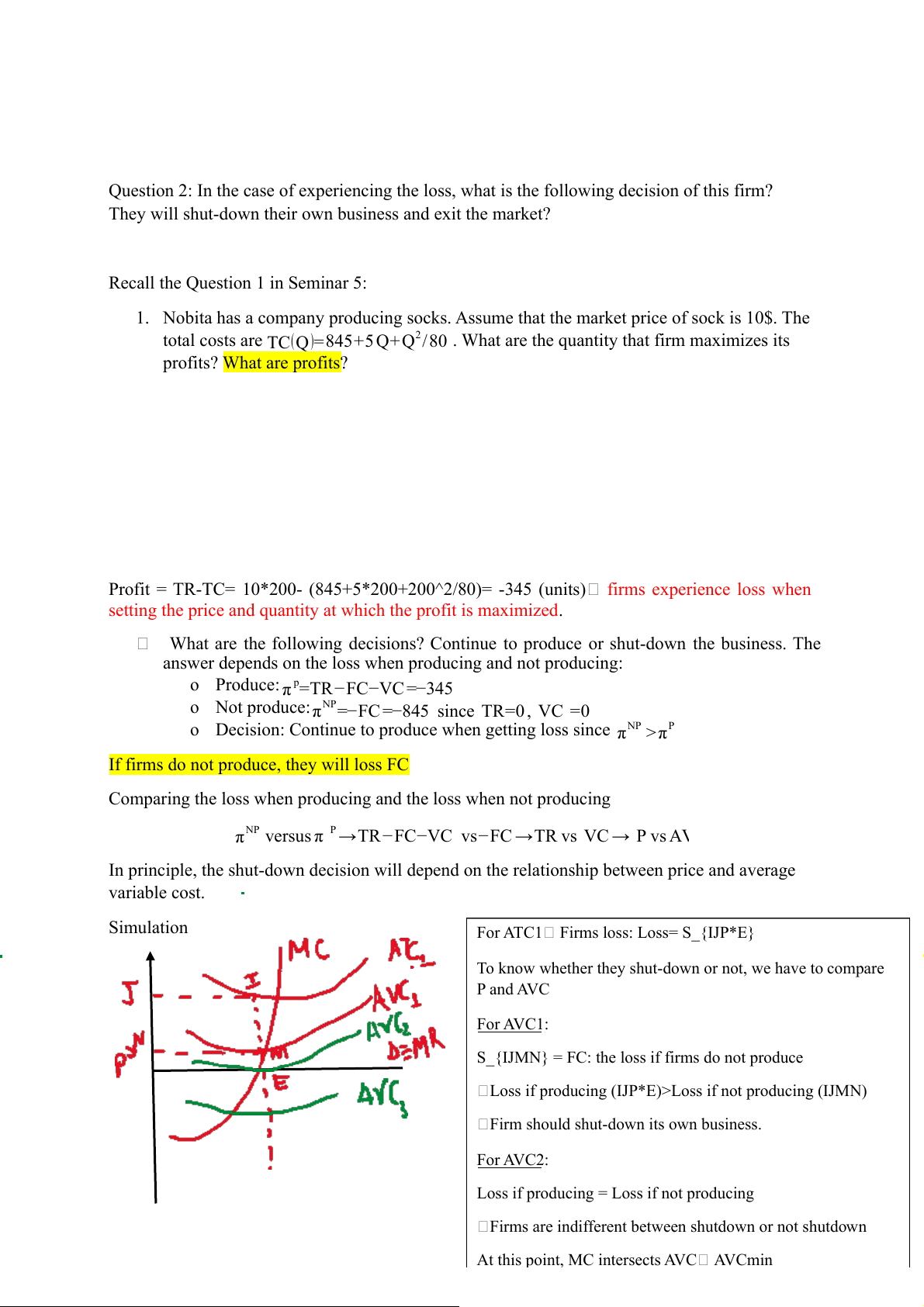 o Decision: Continue to produce when getting loss since πNP >πP