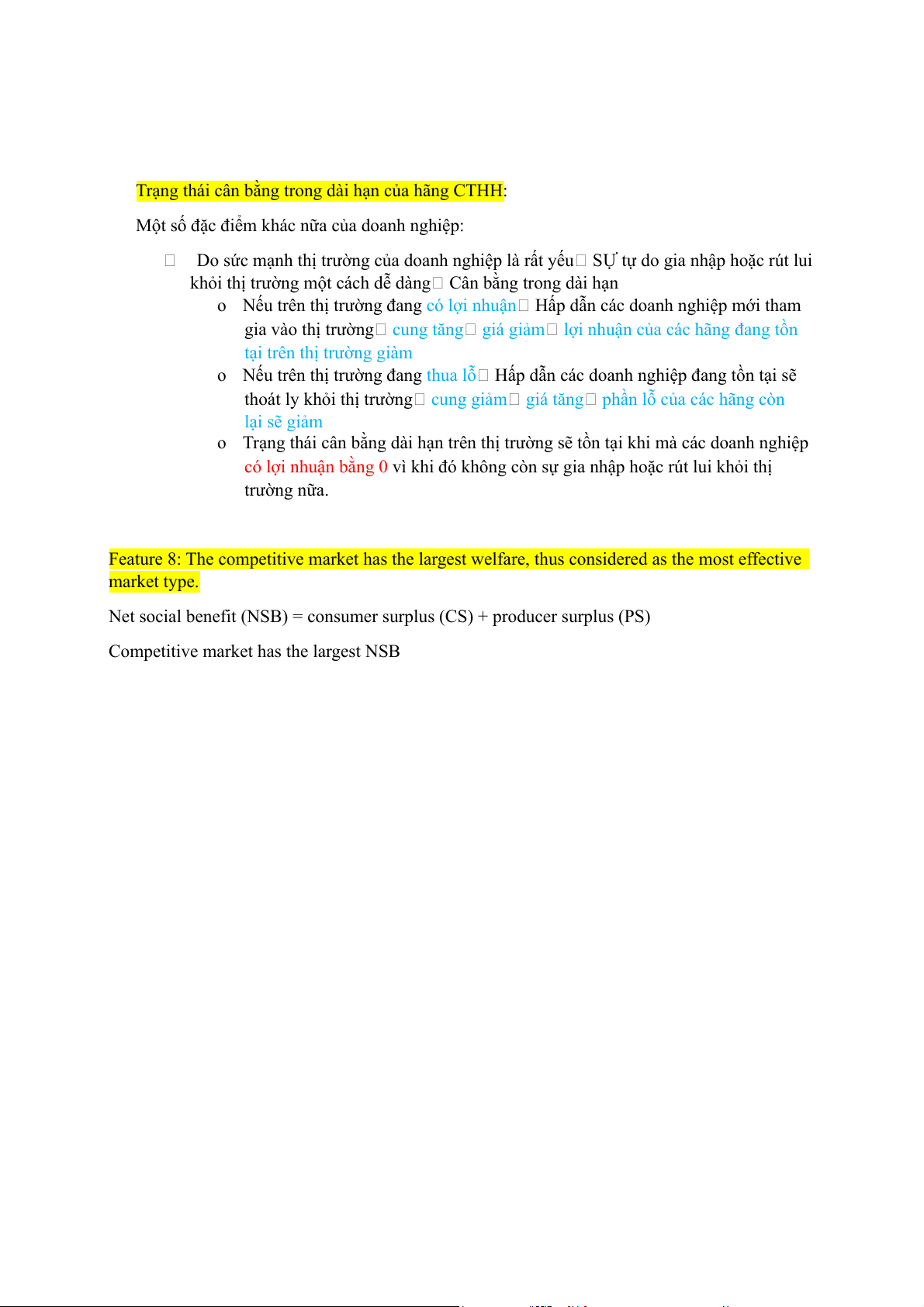 o Trạng thái cân bằng dài hạn trên thị trường sẽ tồn tại khi mà các doanh nghiệp