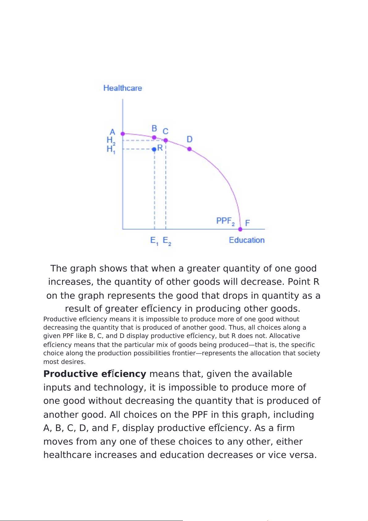 given PPF like B, C, and D display productive efÏciency, but R does not. Allocative