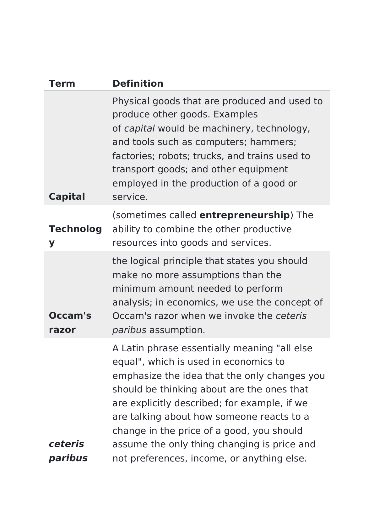 focuses on how individuals, households, and firms make those decisions. Key terms Term Definition