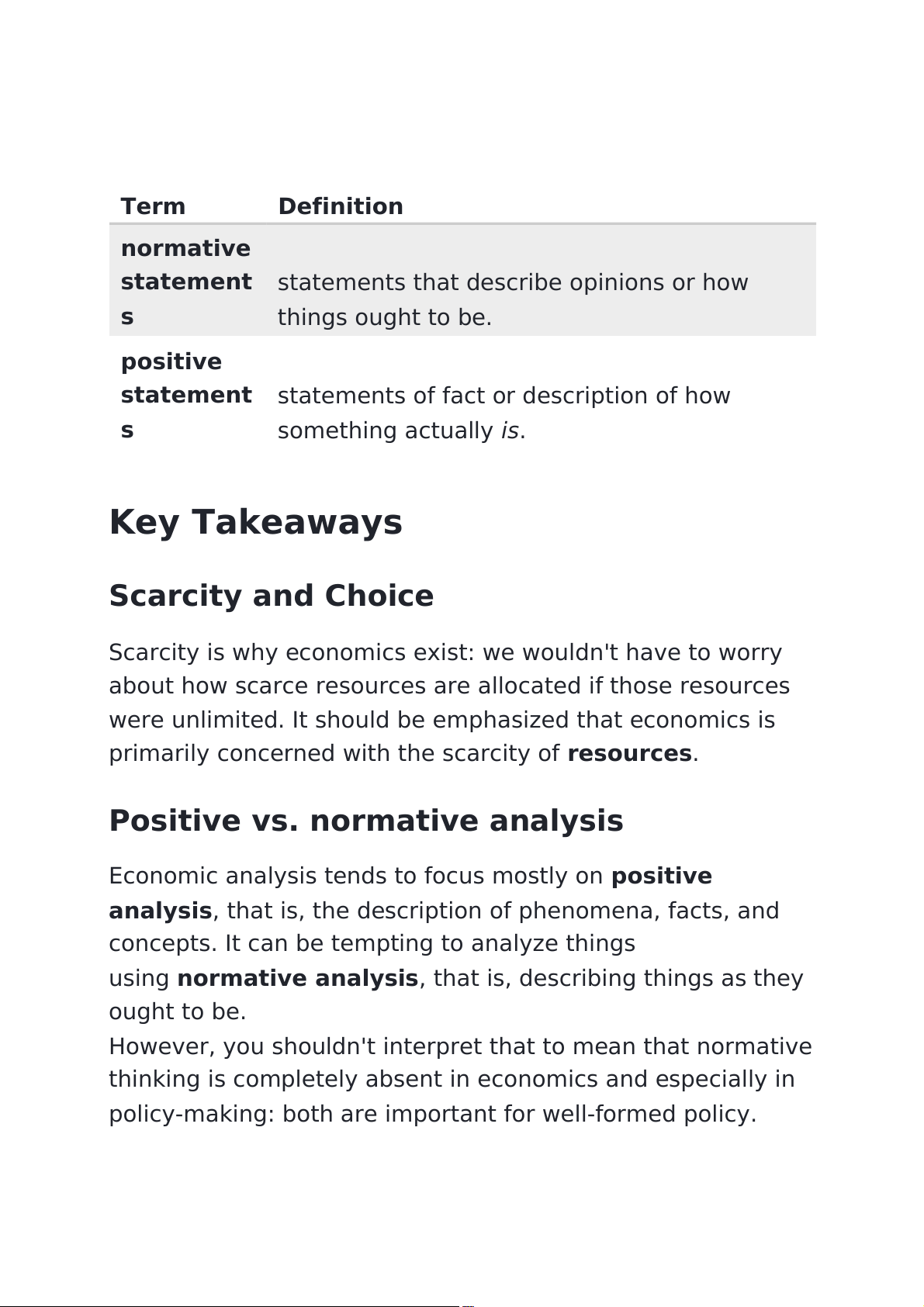 statements of fact or description of how s something actually#is. Key Takeaways Scarcity and Choice