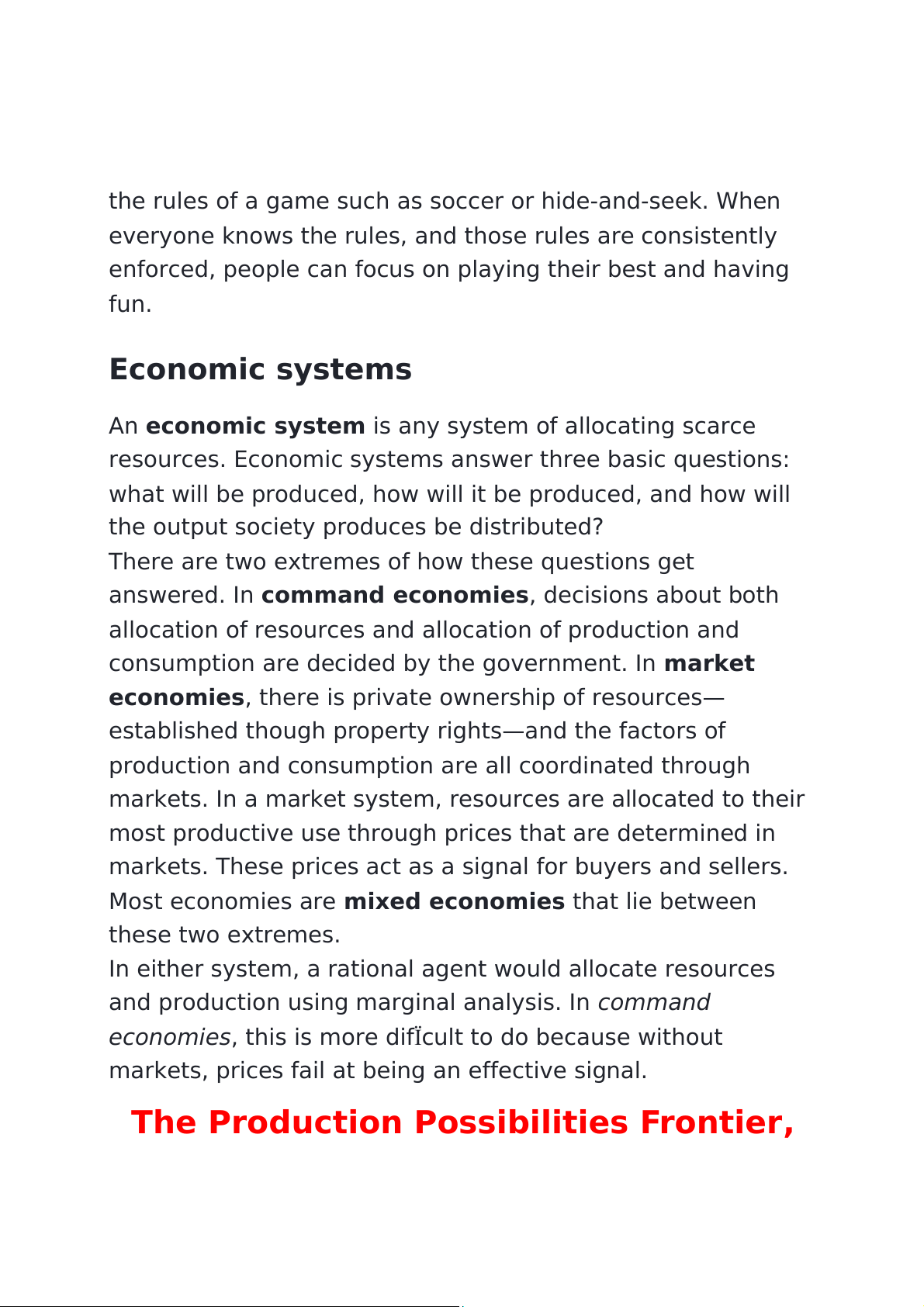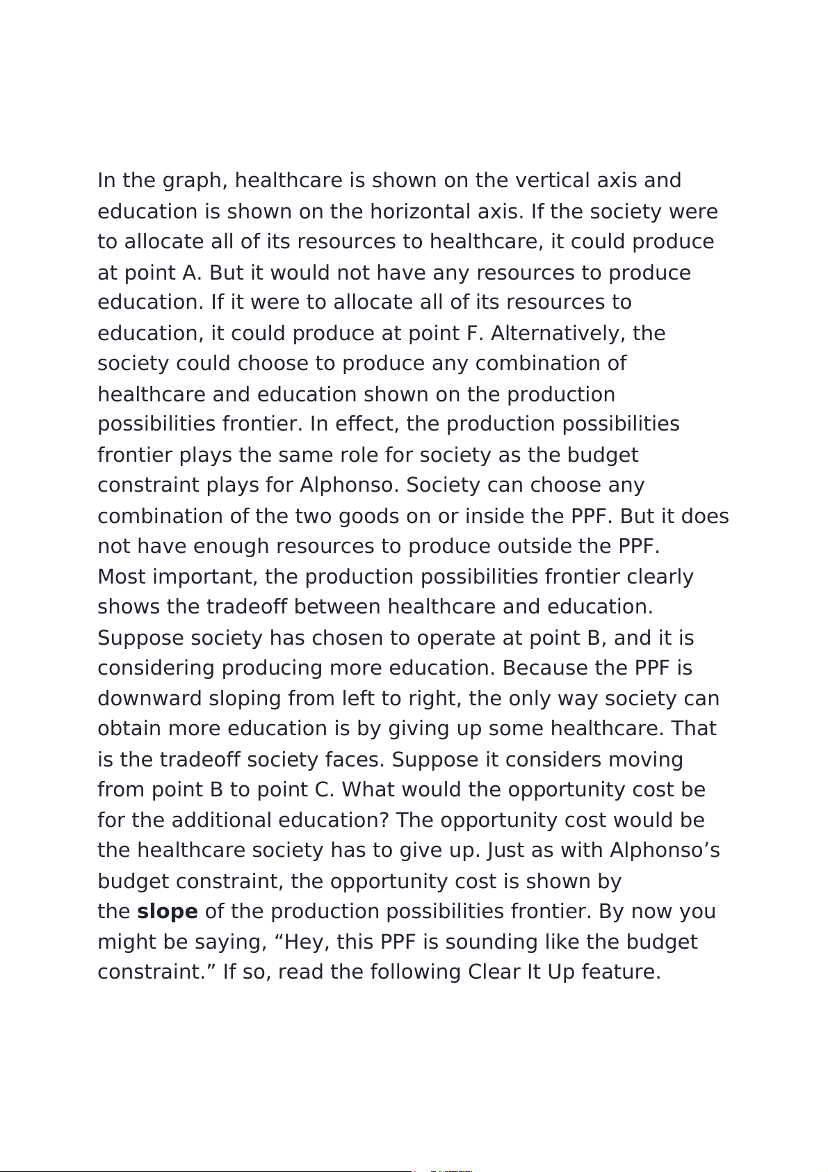 one good typically mean offsetting decreases somewhere else in the economy. The PPF and Comparative Advantage