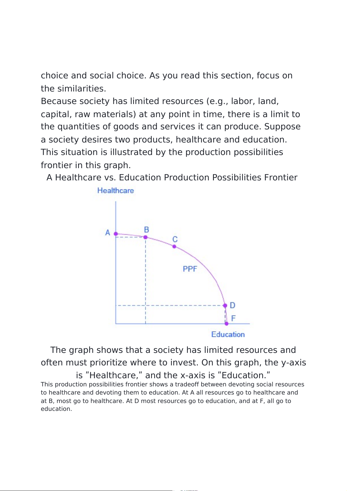 possibilities frontier between healthcare and education.