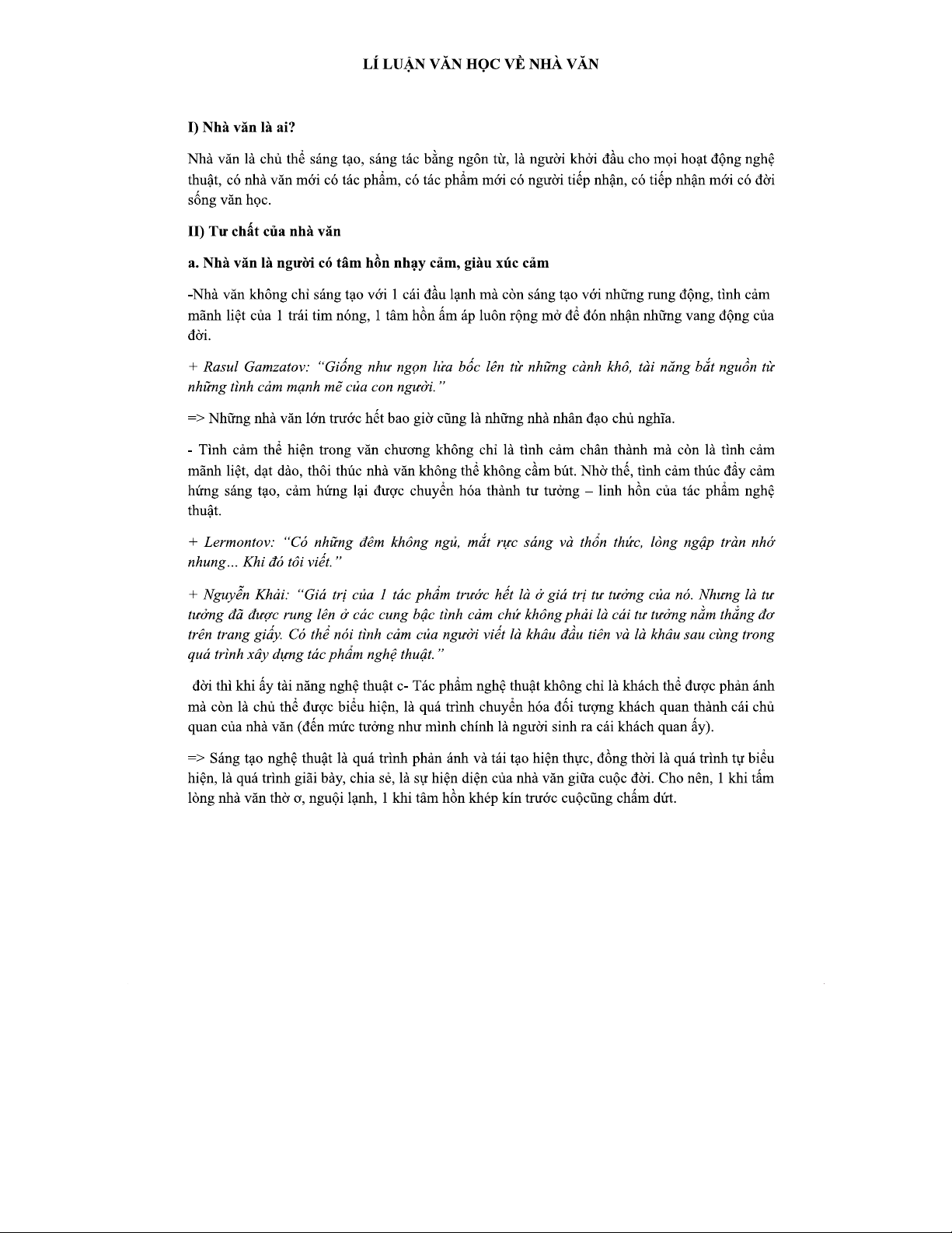 LÍ LUẬN VĂN HỌC VỀ NHÀ VĂN: ĐẶC ĐIỂM VÀ VAI TRÒ CỦA HỌ