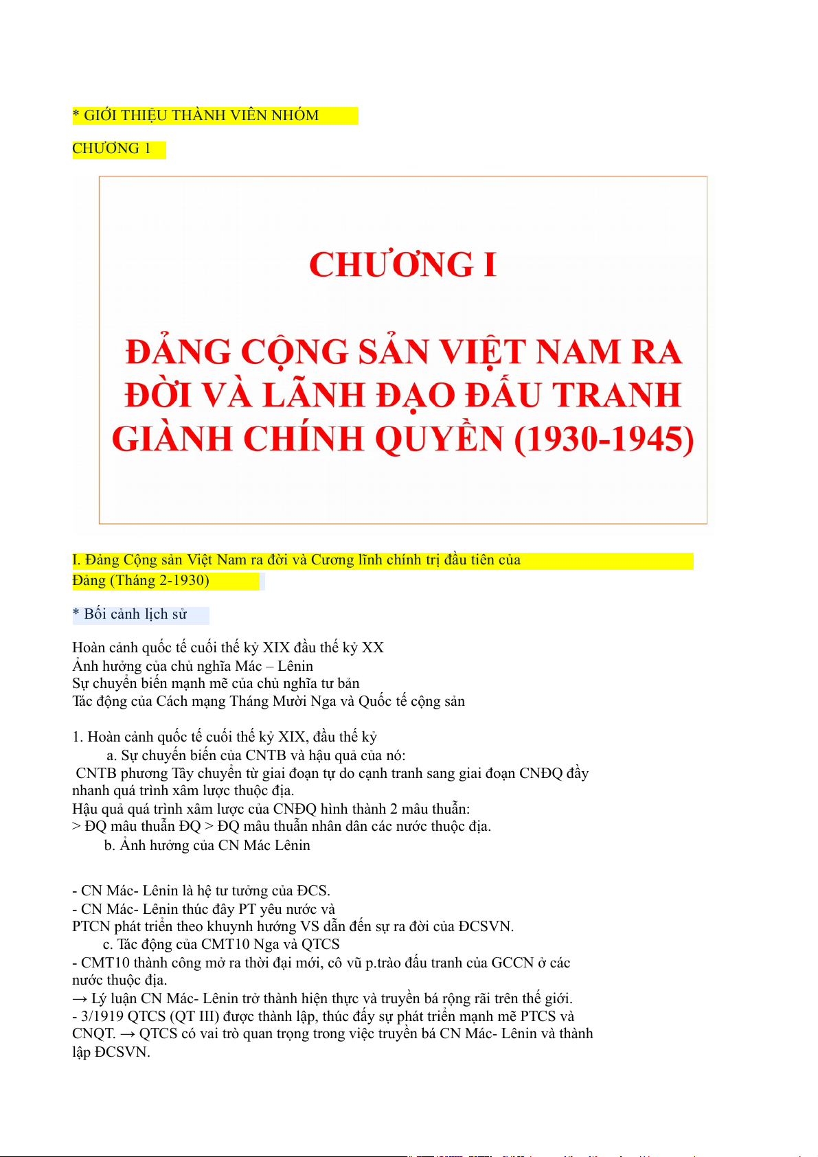I. Đảng Cộng sản Việt Nam ra đời và Cương lĩnh chính trị đầu tiên của Đảng (Tháng 2-1930) * Bối cảnh lịch sử