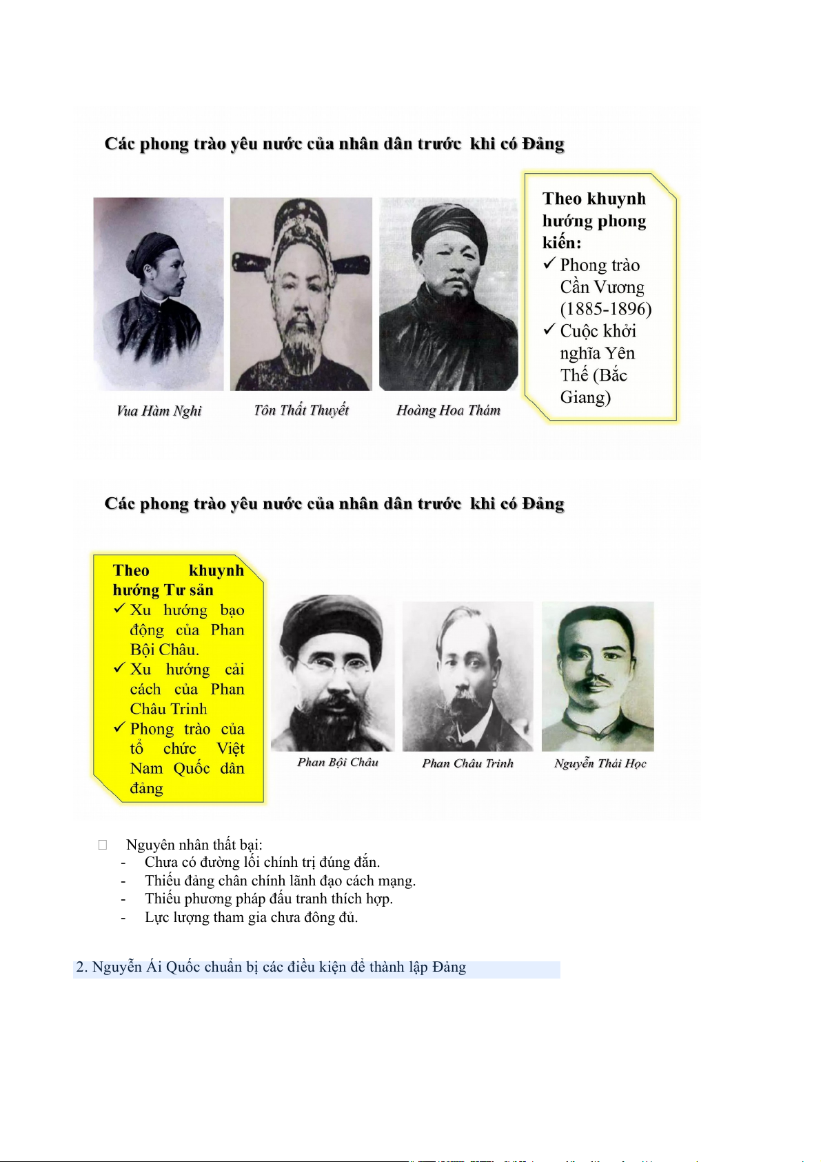 CNQT. → QTCS có vai trò quan trọng trong việc truyền bá CN Mác- Lênin và thành lập ĐCSVN. Nguyên nhân thất bại: -