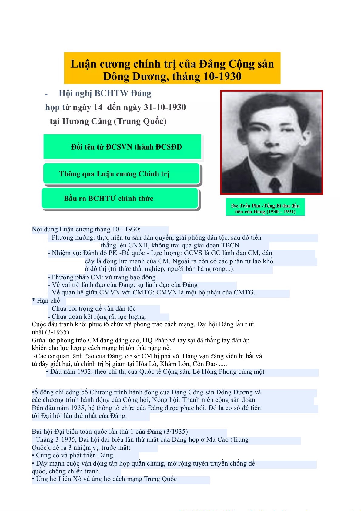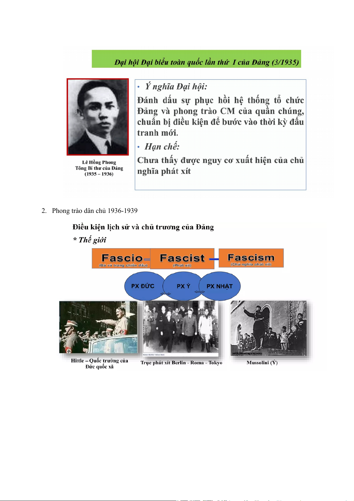 - Tháng 3-1935, Đại hội đại biêu lân thứ nhât của Đảng họp ở Ma Cao (Trung