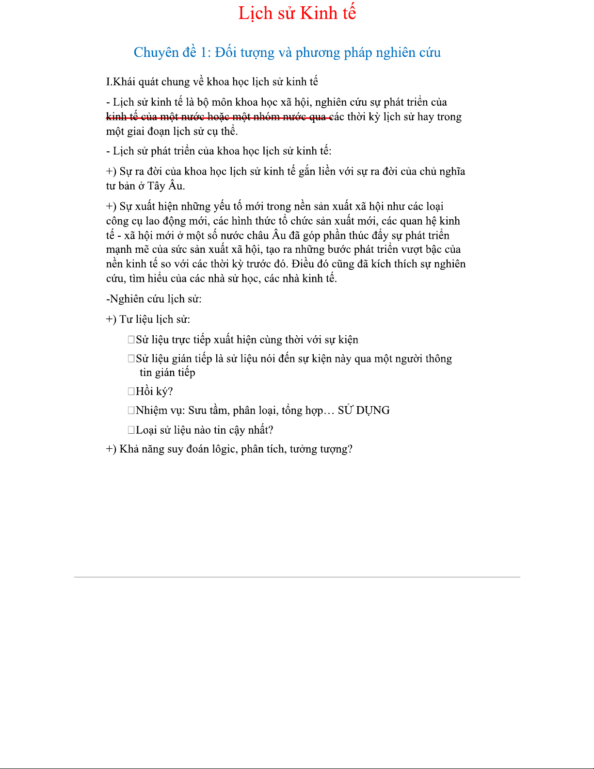 Lịch sử Kinh tế: Nghiên cứu và Phương pháp - LSKT