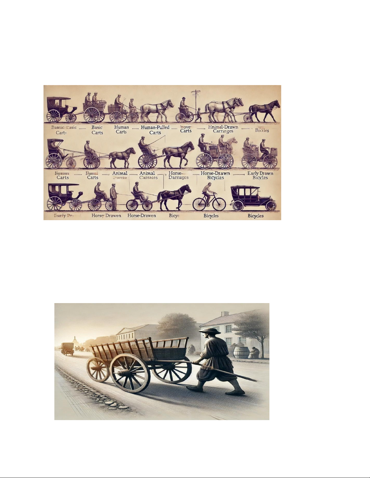 như xe kéo bằng tay do con người điều khiển, dần tiến hóa qua thời kỳ động vật kéo, phát triển