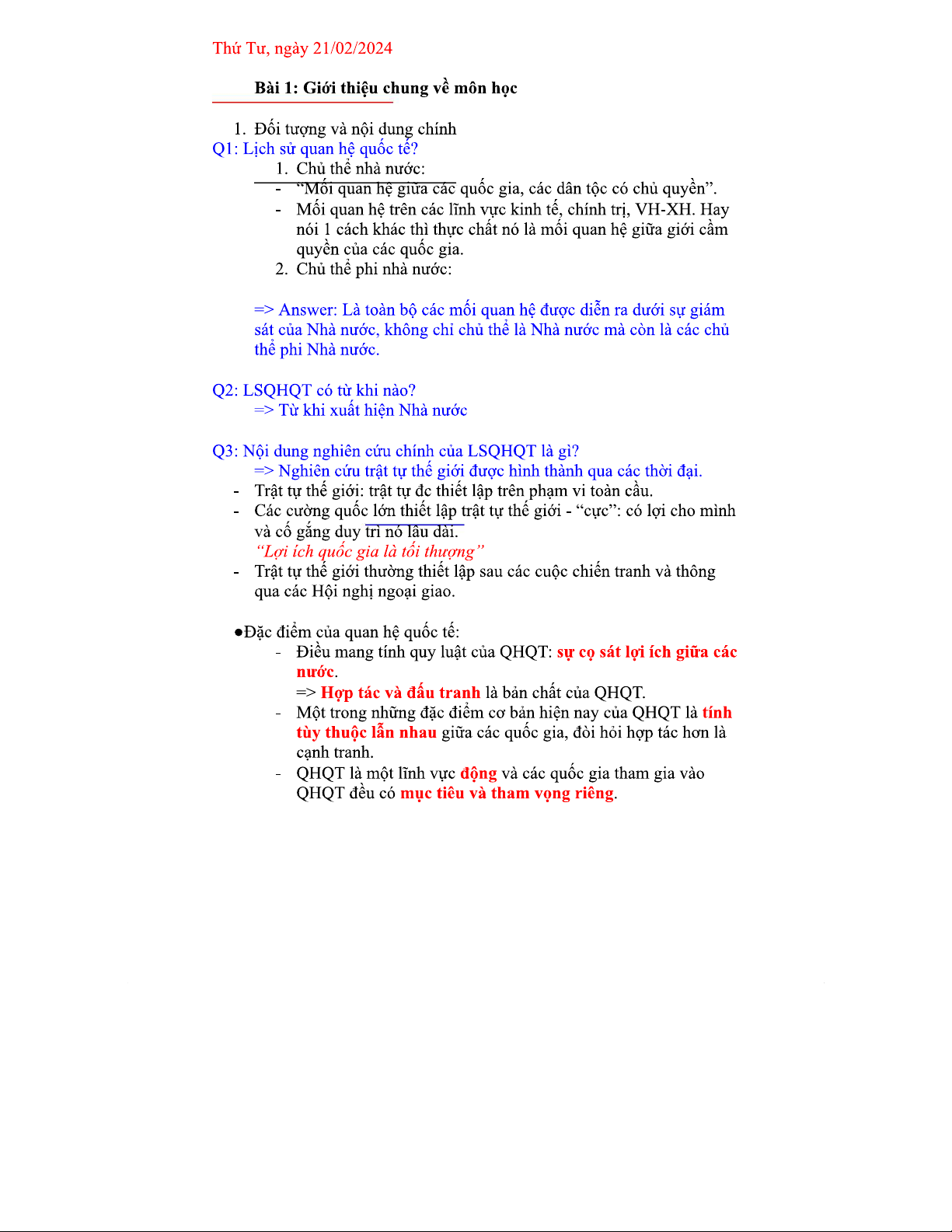 LỊCH SỬ QHQT HIỆN ĐẠI 1 (1648 - 1945): Khái niệm và Giai đoạn Chính