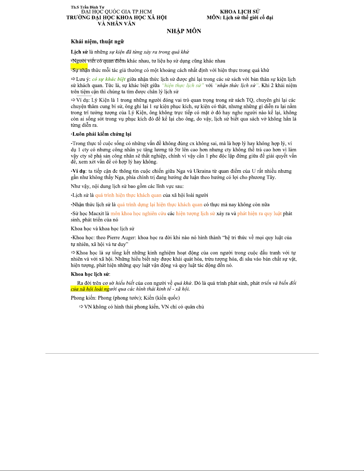 Lịch Sử Thế Giới Cổ Đại - Những Khía Cạnh Quan Trọng (Môn: LSTG)