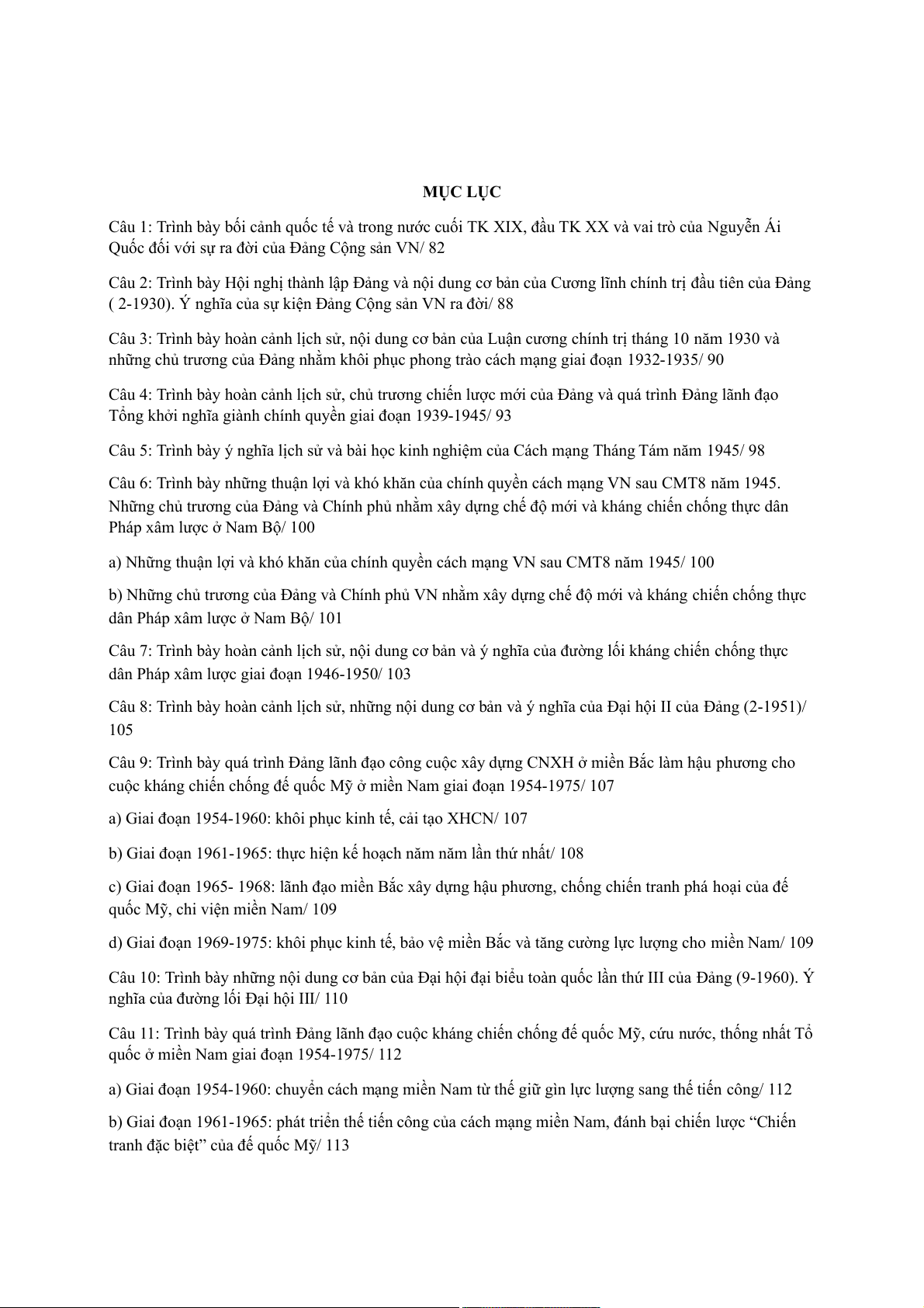 Câu 8: Trình bày hoàn cảnh lịch sử, những nội dung cơ bản và ý nghĩa của Đại hội II của Đảng (2-1951)/ 105